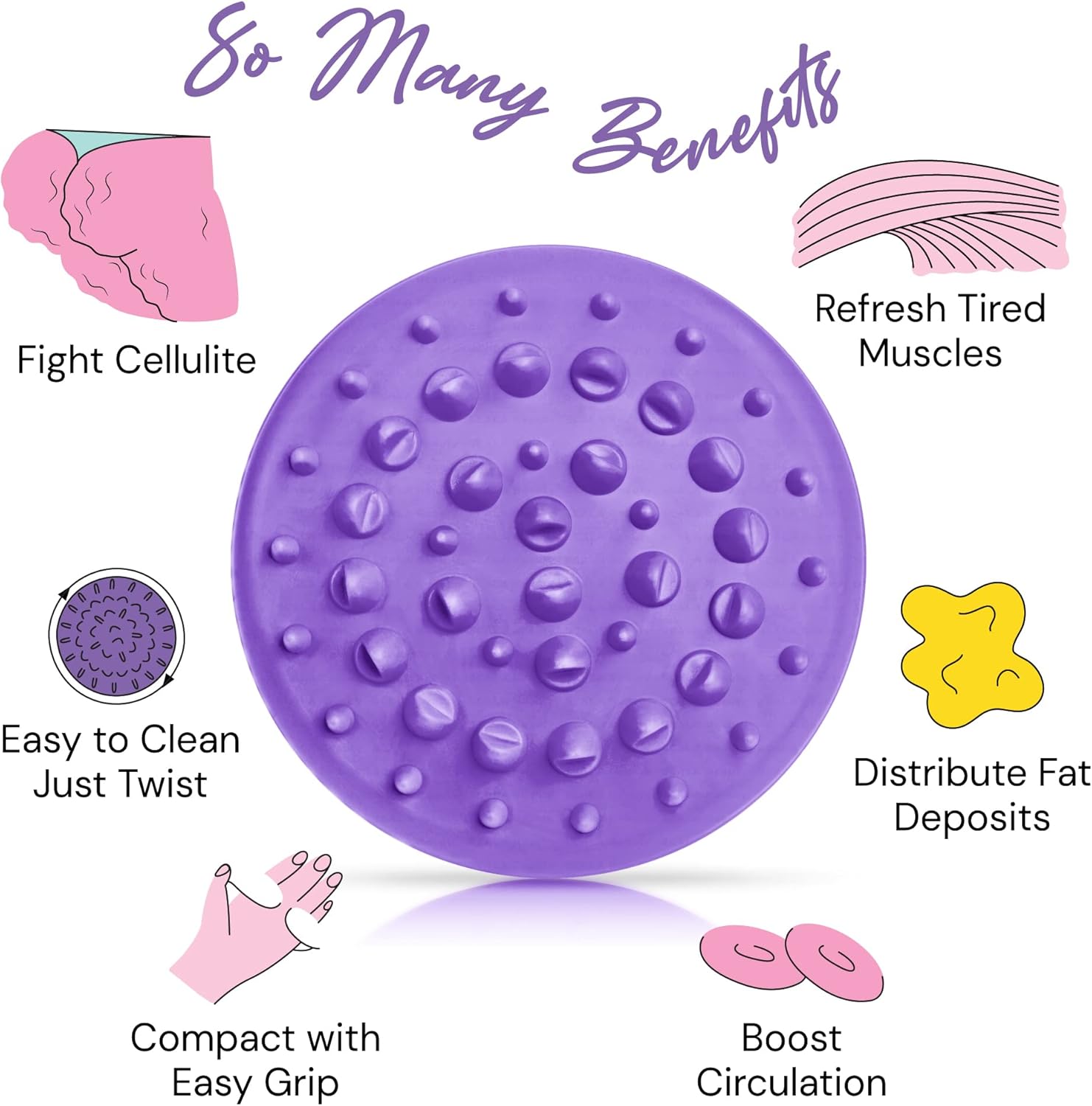 - Easy Grip and Compact: Dual-handle allows easy pick-up, grip and slide motions to massage. Lightweight, compact, easy to pack means you can take it with you when you travel. Handheld cellulite remover and cellulitis massager. Do not rub on dry skin, use in combination with an anti-cellulite oil.