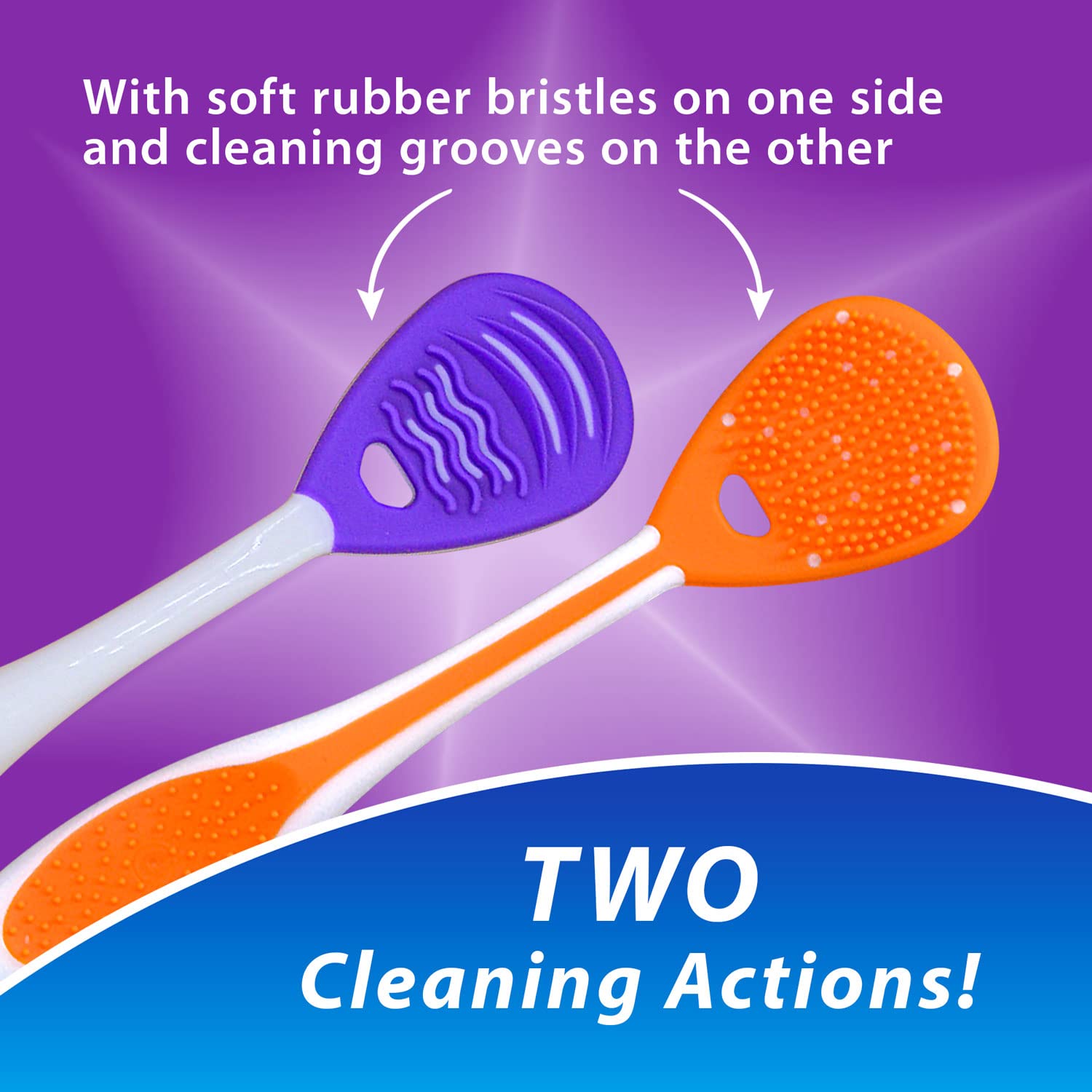 Tongue Cleaner (3-Pack) with Gentle Cheek Scraper. Two-Sided Head with Dual Action Cleaning for Fresh Breath.