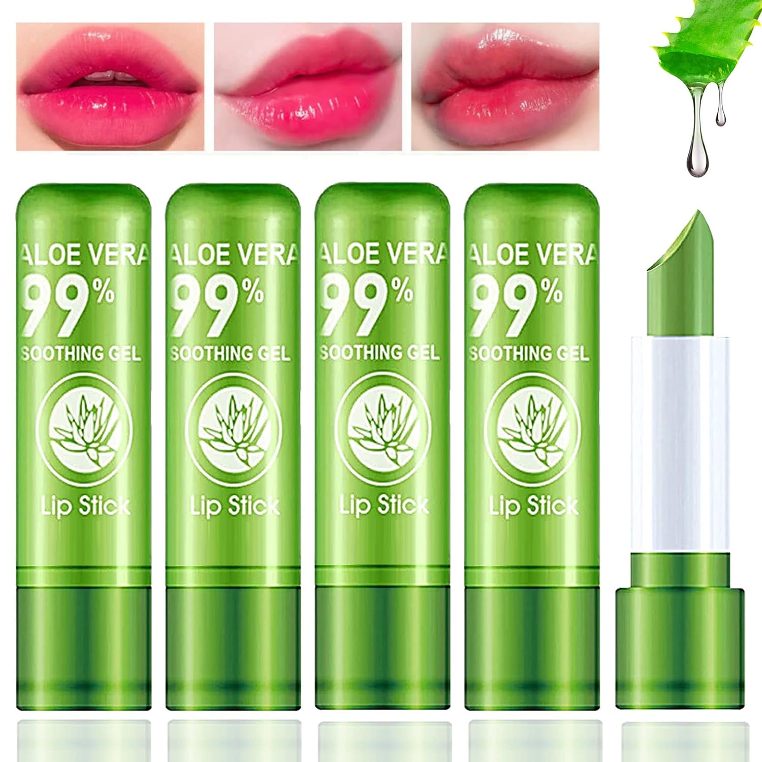 5 Pieces Aloe Vera Lipstick,Long Lasting Moisturizing Lip Balm,Nourishing Lip stick,Lipstick,Lip Balm,Magic Temp Color Change,Waterproof Lip Gloss Matte Makeup