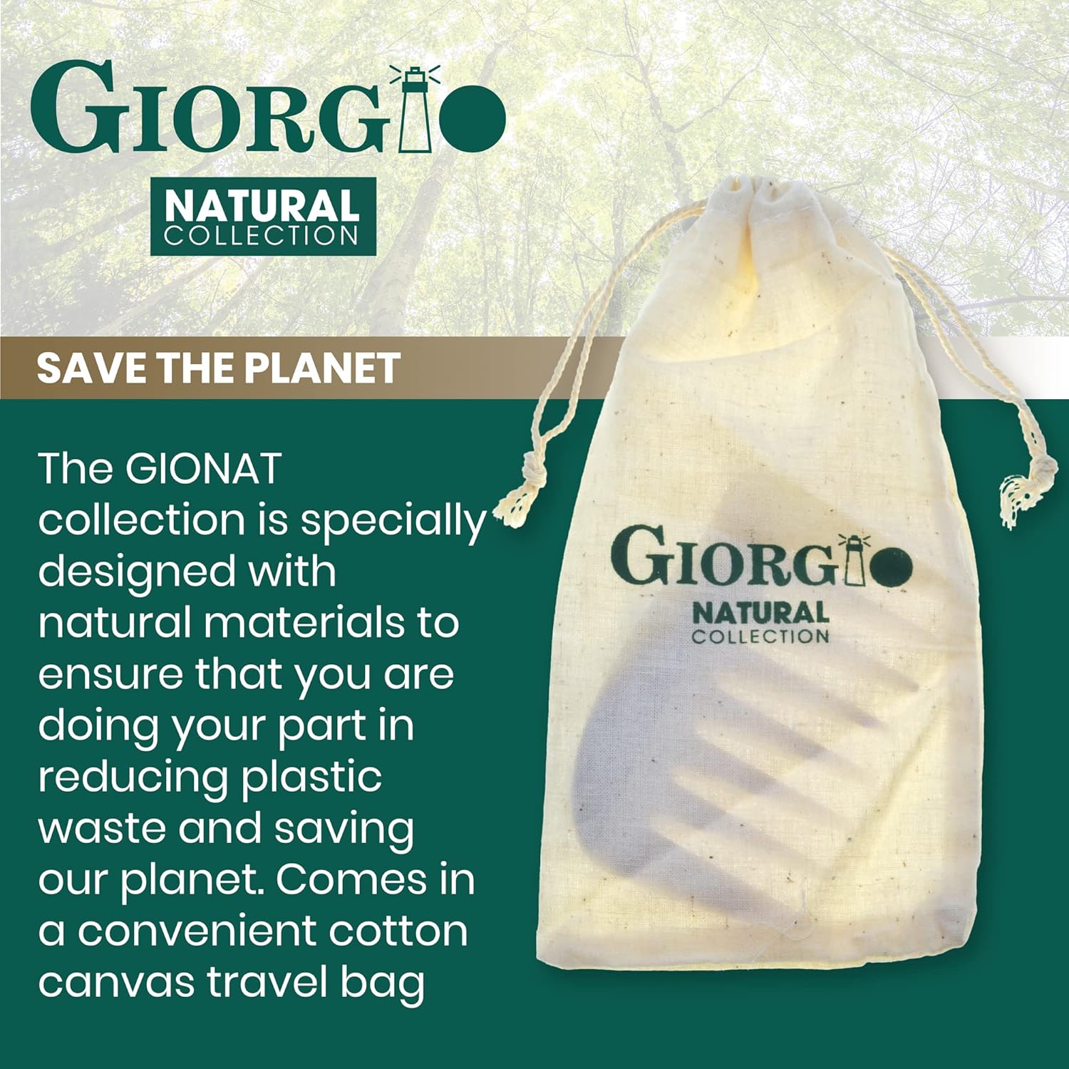 - GIORGIO NATURALS - The GIONAT collection is specially designed with natural materials to ensure that you are doing your part in reducing plastic waste and saving our planet. GIONAT products come in a convenient cotton canvas travel bag for storage