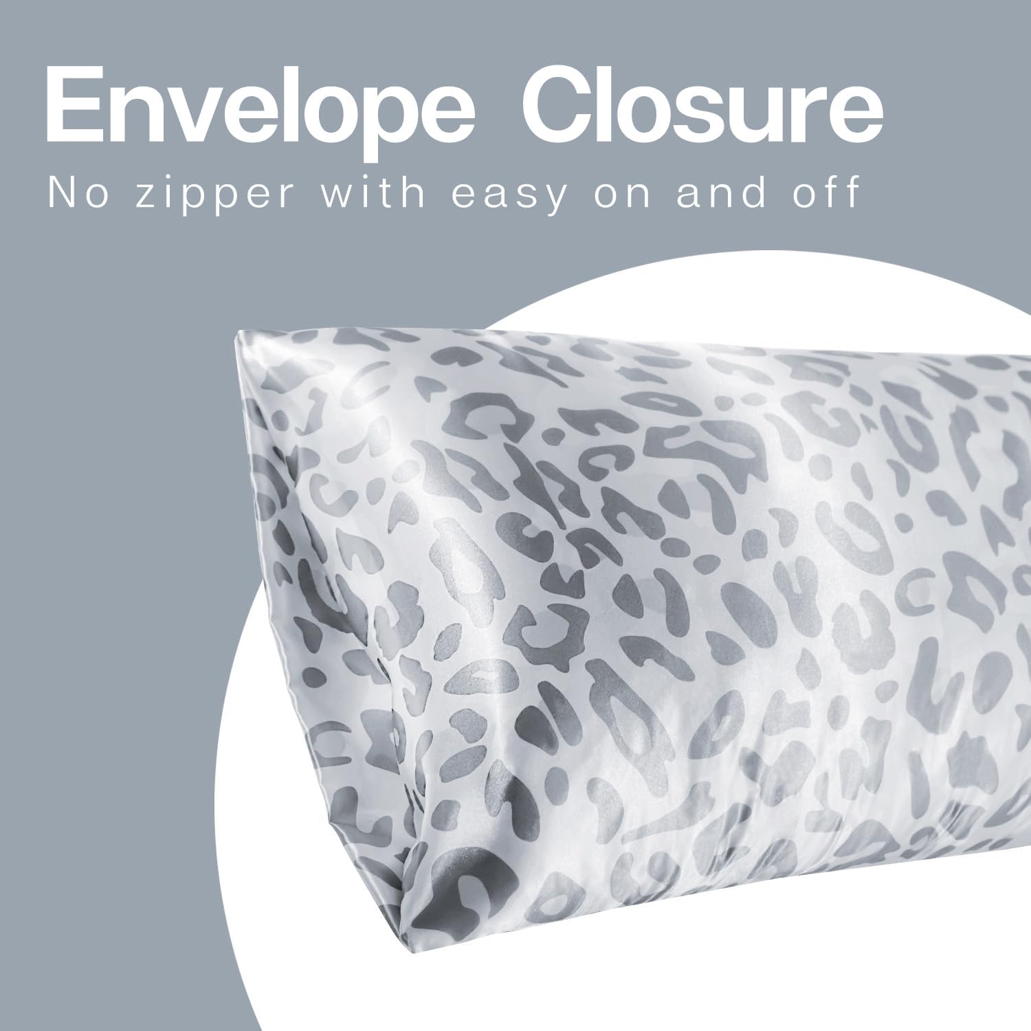MR&HM Satin Pillowcase for Hair and Skin, Silk Satin Pillowcase 2 Pack, King Size Pillow Cases Set of 2, Silky Pillow Cover with Envelope Closure (20x36, Silver Leopard)