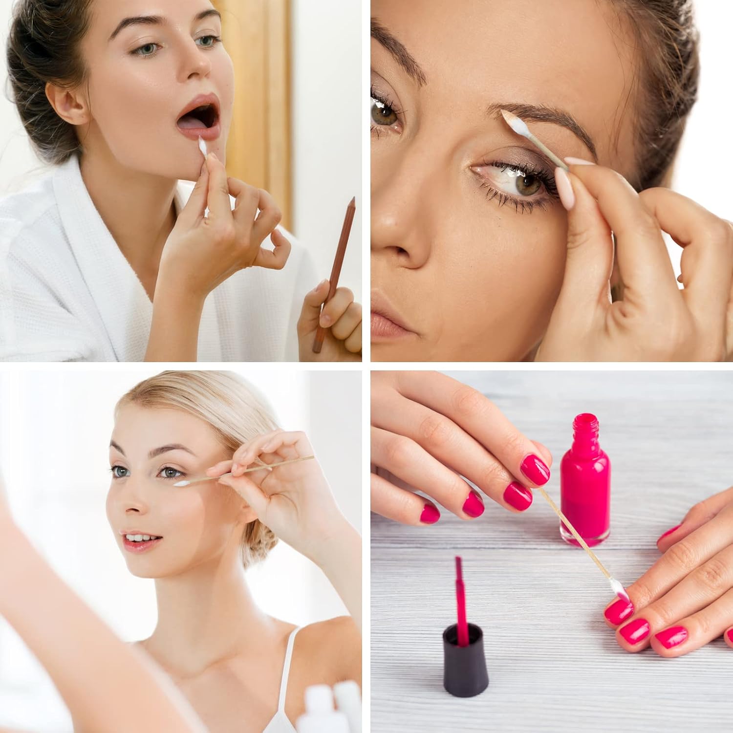 - 100% Eco Friendly Cotton Tipped Applicators: made of natural organic cotton, 100% vegan & cruelty-free, chlorine-free, hypoallergenic, soft and compact cotton buds, highly absorbent but not easy to get unravel or fall off even wet, safe to use.