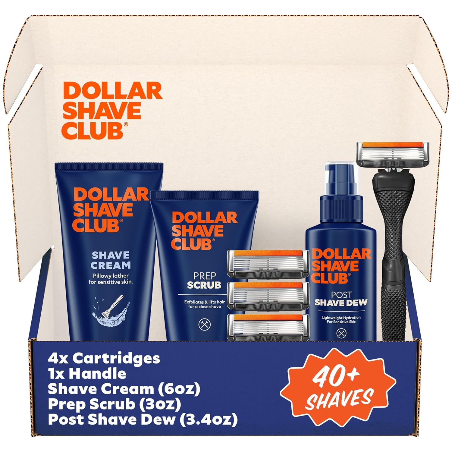 Dollar Shave Club | Ultimate Shave Set | 4 Extra Close Refill Cartridges, 1 Handle, 1 Prep Scrub 3 ounce, 1 Shave Cream 6 ounce, 1 Post Shave Dew 3.4 ounce