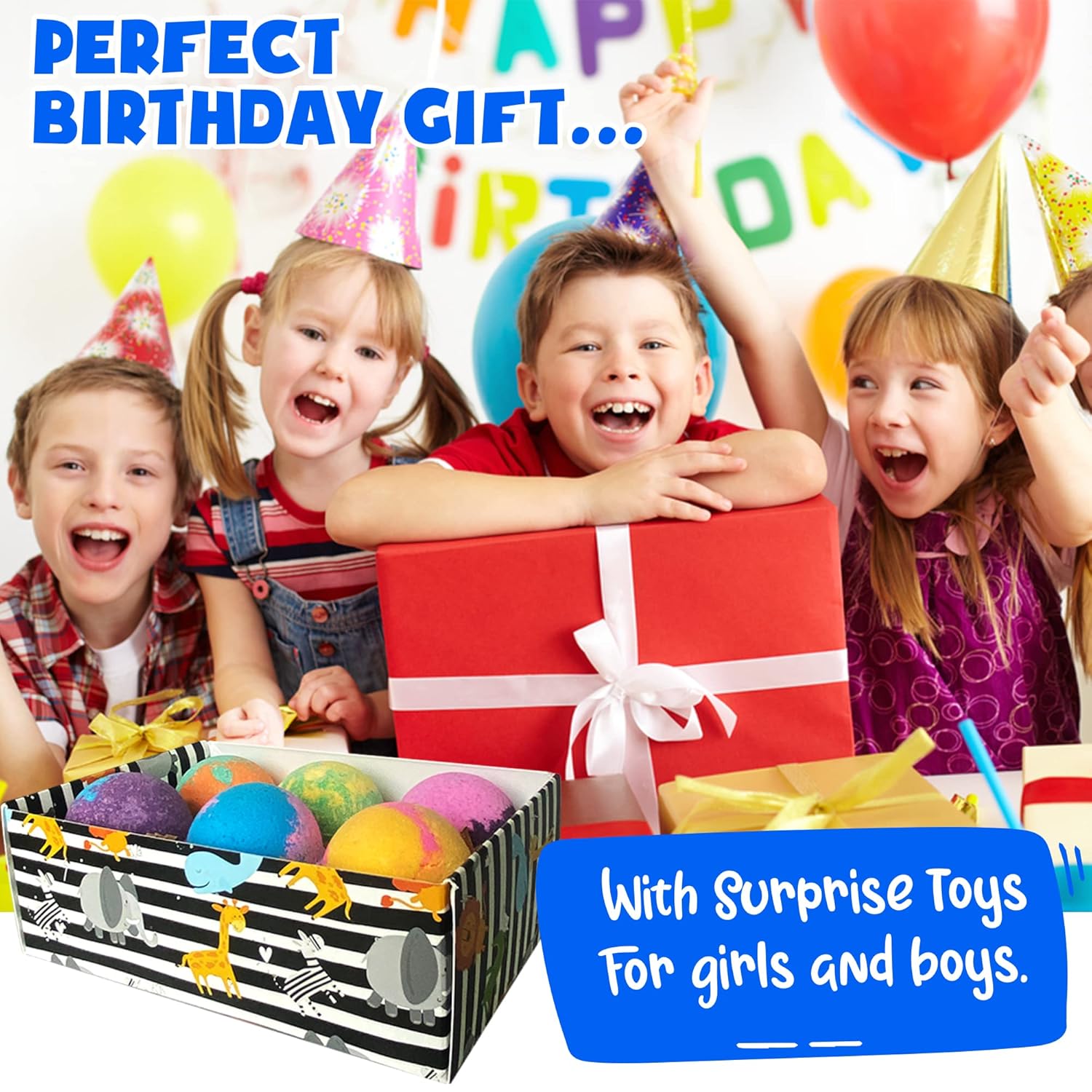 - 6 COLORFUL KIDS BATH BOMBS SET with toys inside (animal toys reveals when they fizz out!)These bathbombs makes bath time fun and relaxing for kids age 3, 4, 5, 6 ,7, 8, 9 year old