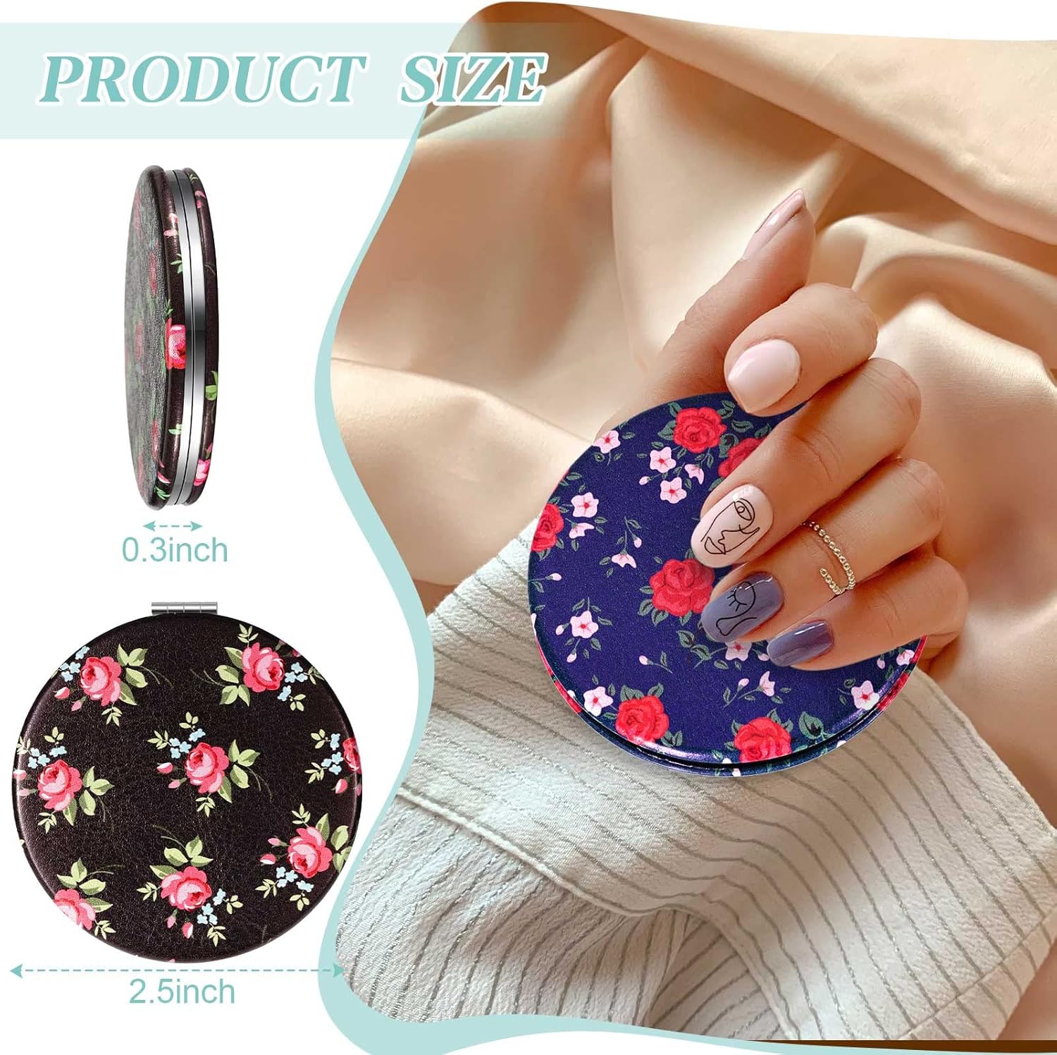 - Package Includes: the package comes with 6 pieces of small pocket mirrors with flower pattern and various colors; Different styles and sufficient quantity can meet your daily needs, and you can also share them with your family and friends