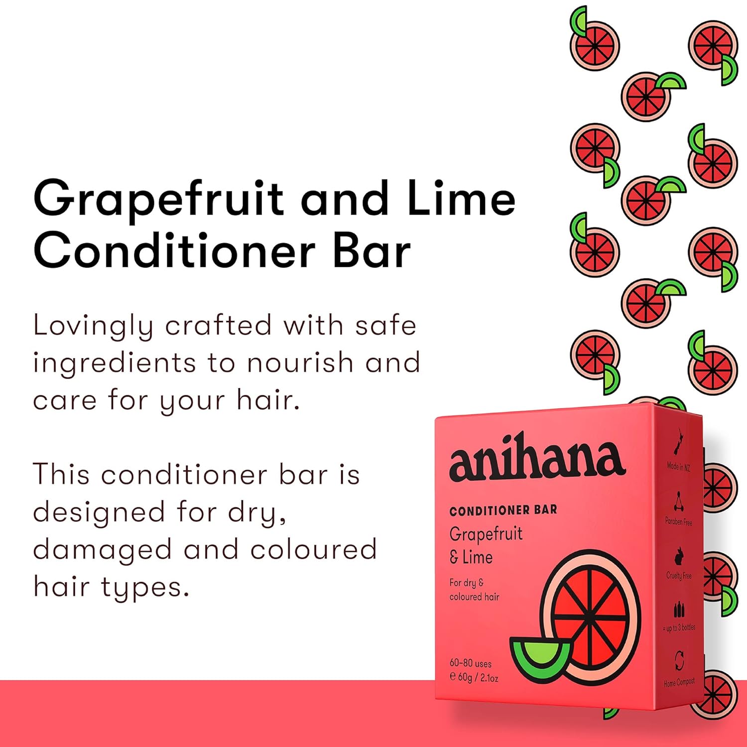 - GRAPEFRUIT & LIME: Introducing Anihana conditioner bar infused with grapefruit & lime with a delightful fragrance, leaving your hair smelling fresh and revitalized without overwhelming your senses