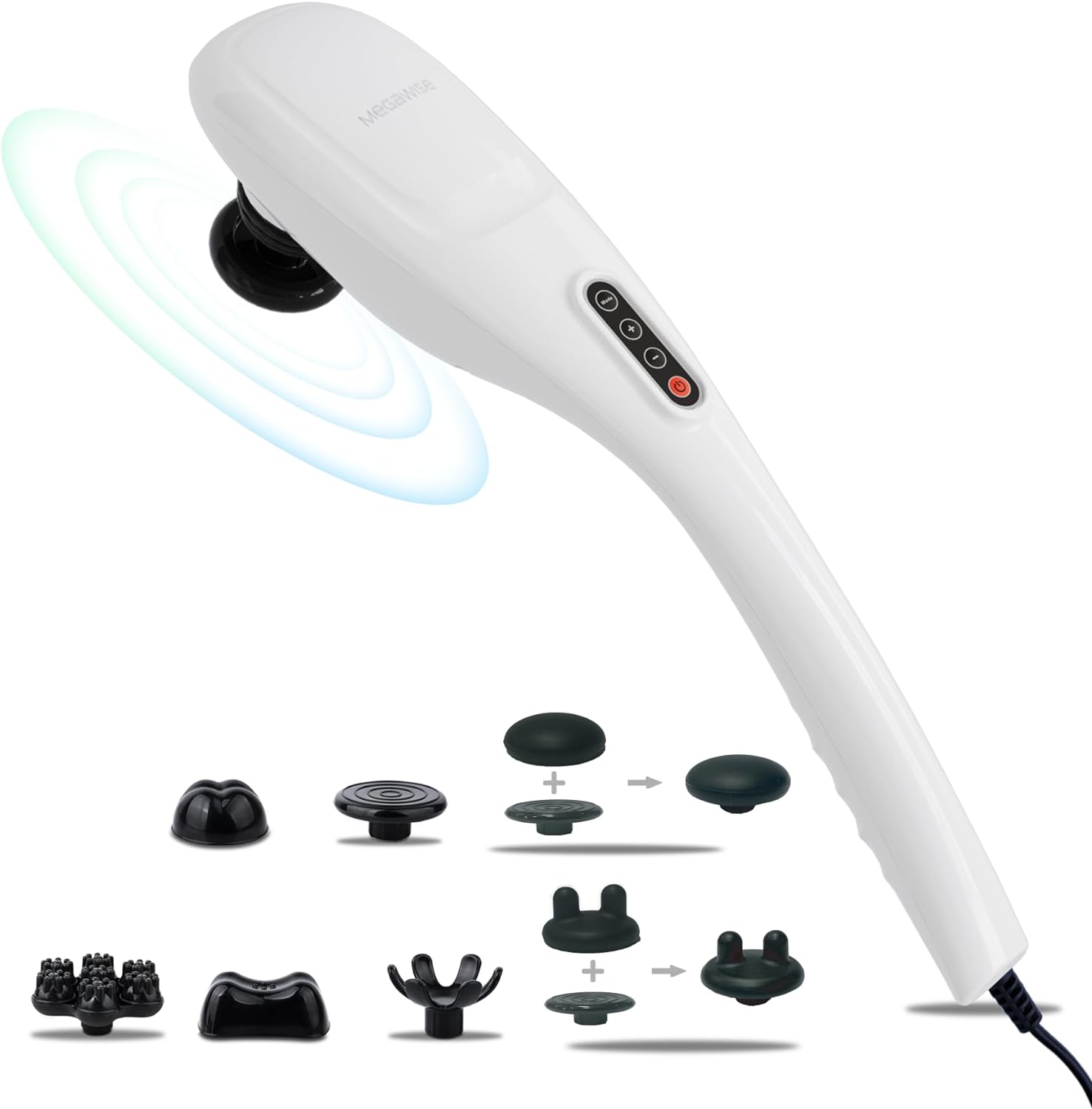 MEGAWISE Handheld Back Massager | Deep Tissue Percussion Relief for Back, Neck, Shoulders, Waist Legs, Full Body for Improved Blood Circulation and Fatigue Relief (Pearl White 6Ft Corded)