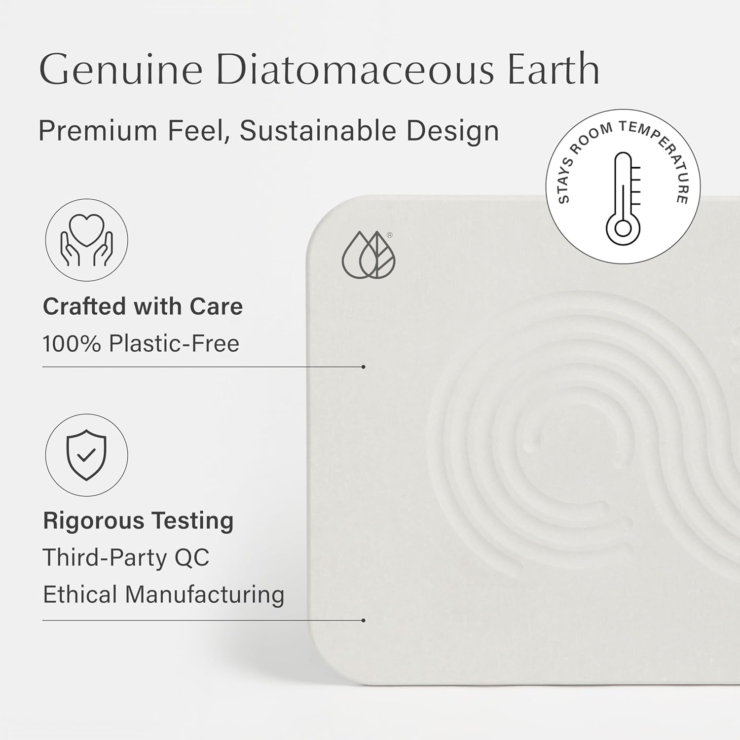 - QUICK-DRYING DIATOMACEOUS EARTH: Our Diatomaceous Earth Stone Bath Mat absorbs up to 150% of its weight in moisture that evaporates within seconds. This ceramic-like material feels like natural stone, offering a hygienic and durable alternative to traditional bath mats.