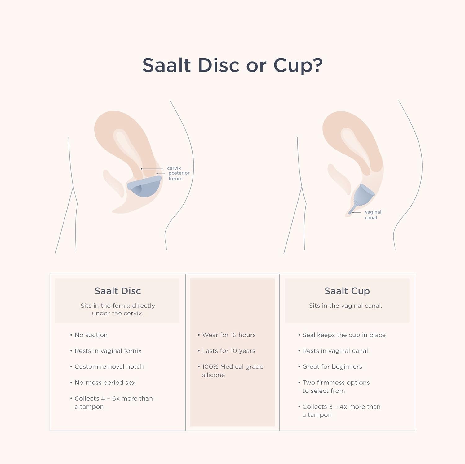 - EASY TO REMOVE - No more playing tampon hide & seek. The Saalt menstrual disc has a built-in finger notch designed for easy removal. Unlike a menstrual cup, the Saalt period disc does not rely on suction to seal, which makes it a better option for use with IUDs. Easy, peasy, period-disc-squeezy.