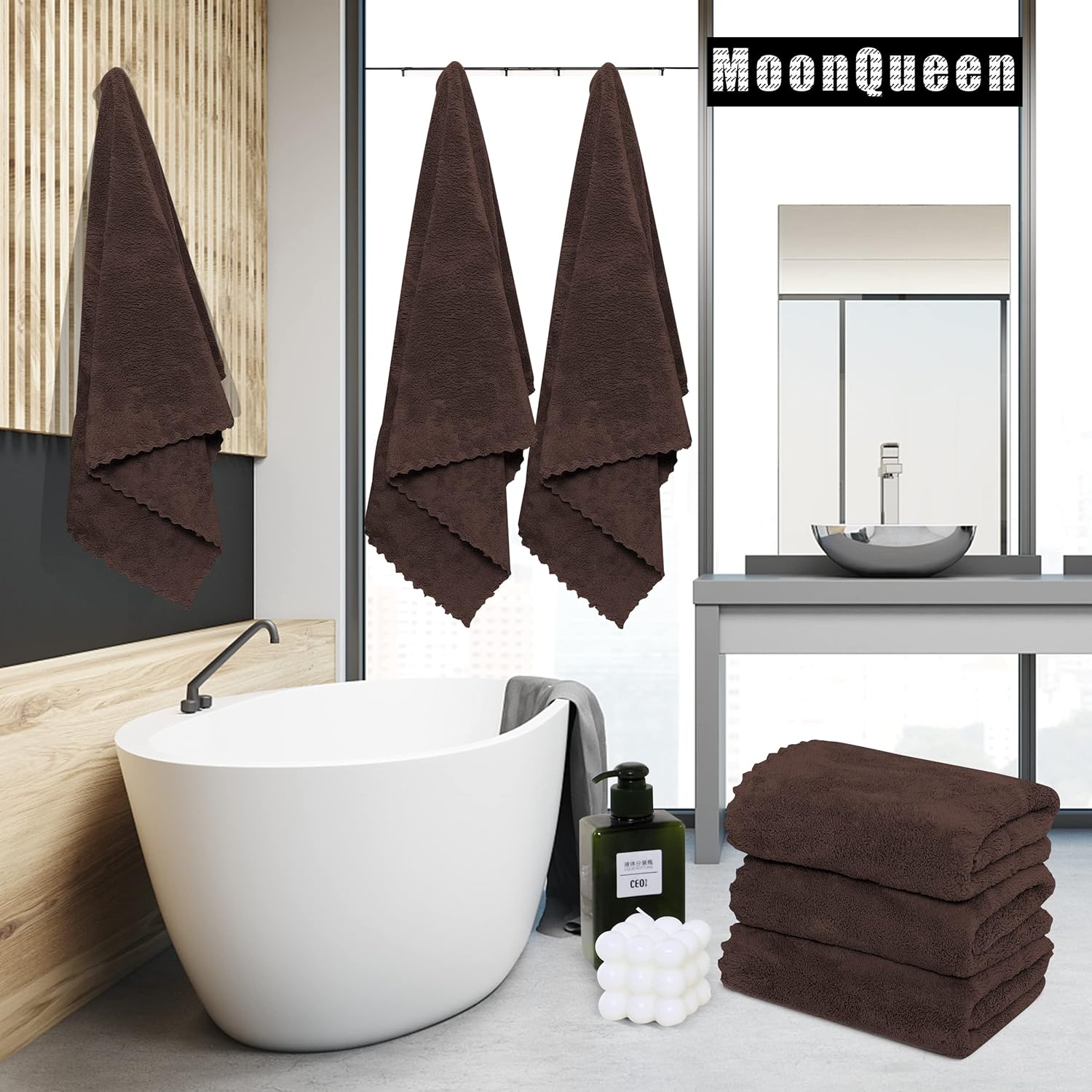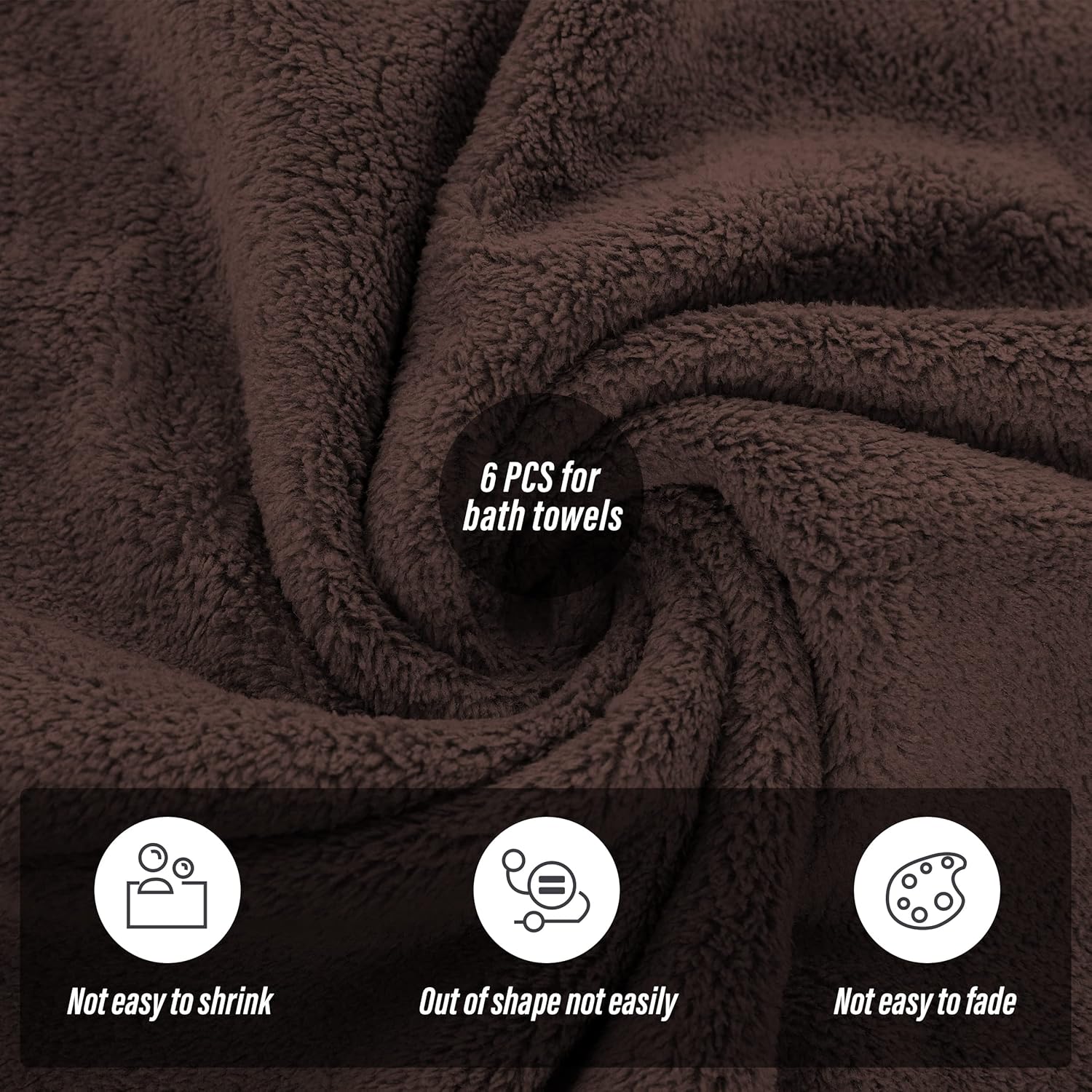 MOONQUEEN 6 Pack Premium Bath Towel Set - Quick Drying - Microfiber Coral Velvet Highly Absorbent Towels - Multipurpose Use as Bath Fitness, Bathroom, Shower, Sports, Yoga Towel (Wood Brown)
