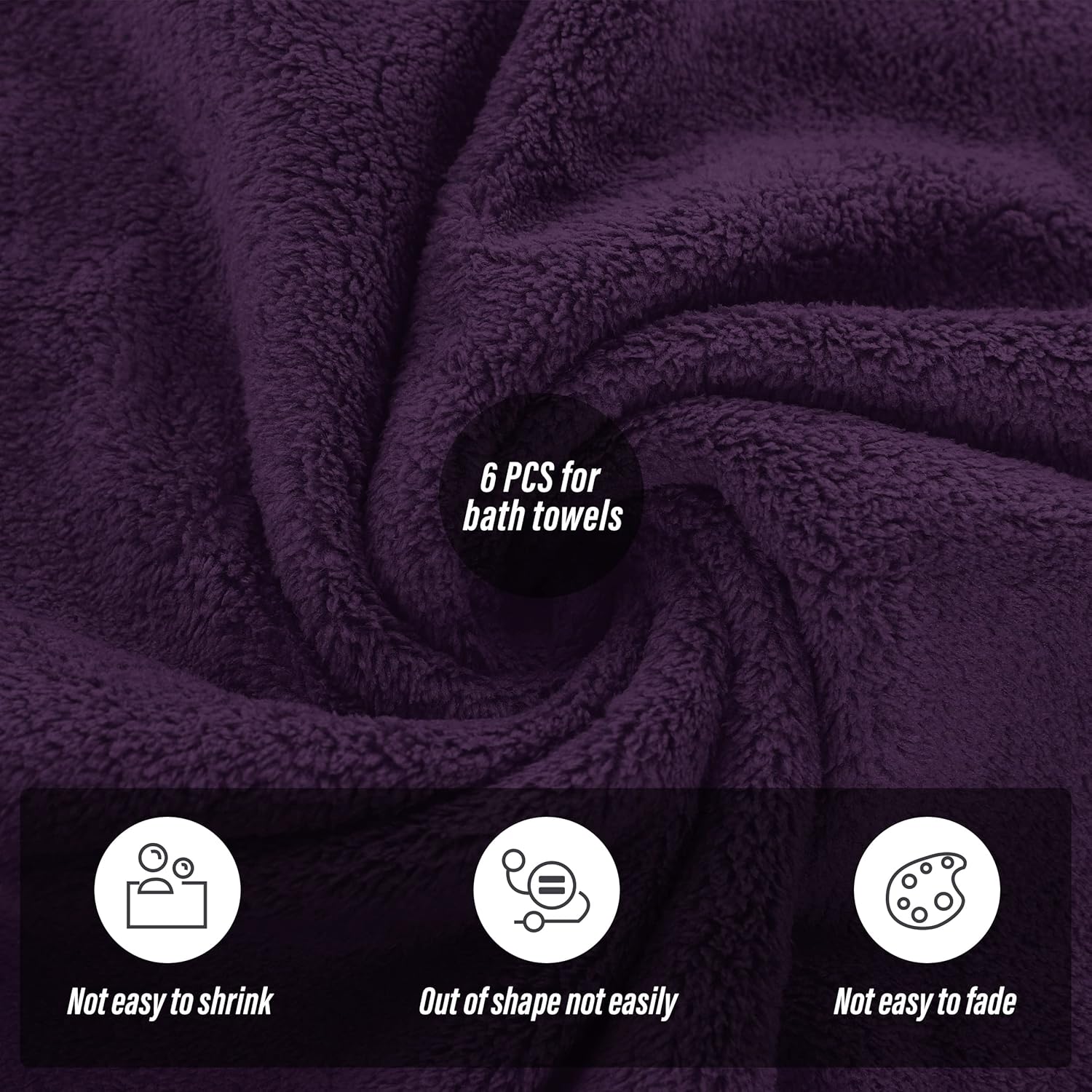 MOONQUEEN 6 Pack Premium Bath Towel Set - Quick Drying - Microfiber Coral Velvet Highly Absorbent Towels - Multipurpose Use as Bath Fitness, Bathroom, Shower, Sports, Yoga Towel (Grape Purple)