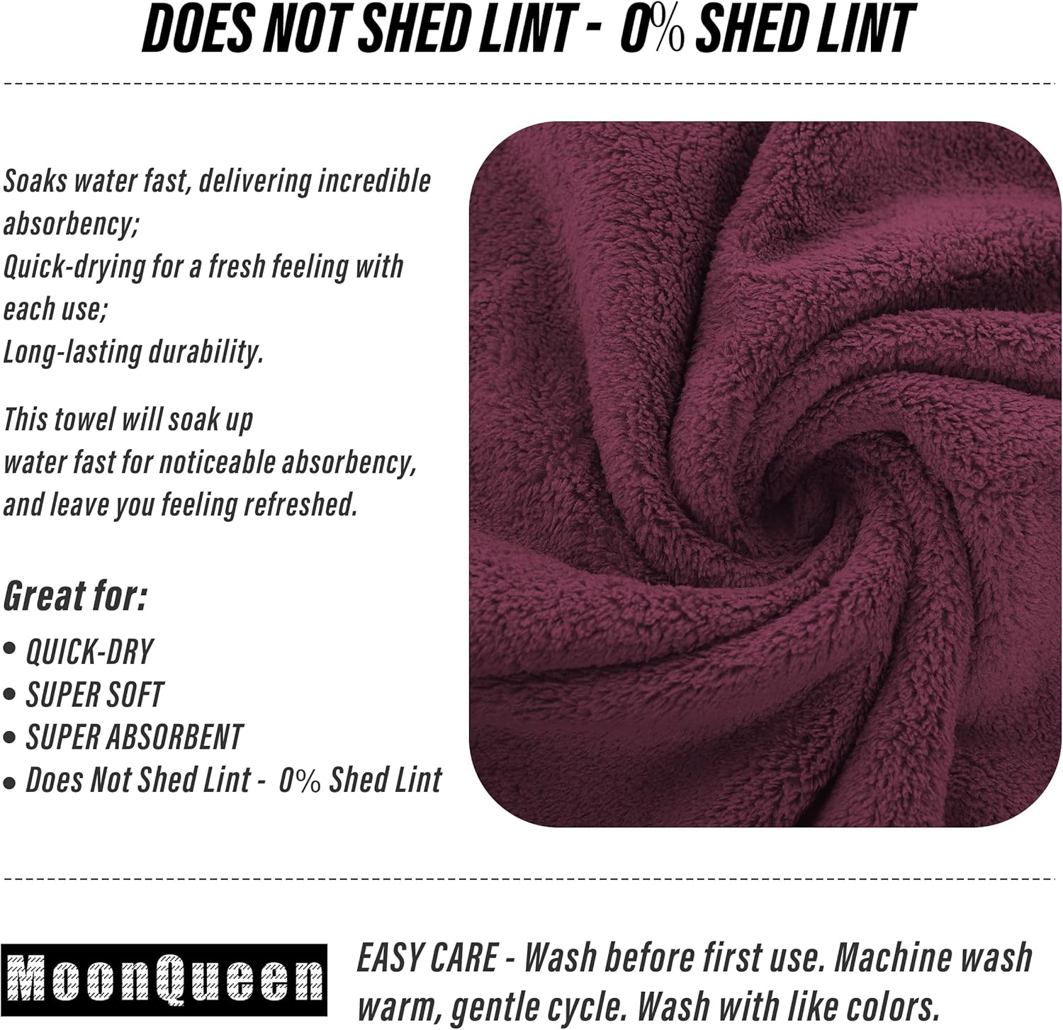 - 【0% Shed Lint】MOONQUEEN User friendly Microfiber coral velvet Widely Used in Options- These quick dry small towels are versatile plush fabric towel, Perfect for poolside, bathroom, Beach, salon, college dorm room essentials , spa, wedding resgisry or gym use. The towel set is designed to provide users with all their basic bathroom drying needs to wrap around your hair or to dry your body.