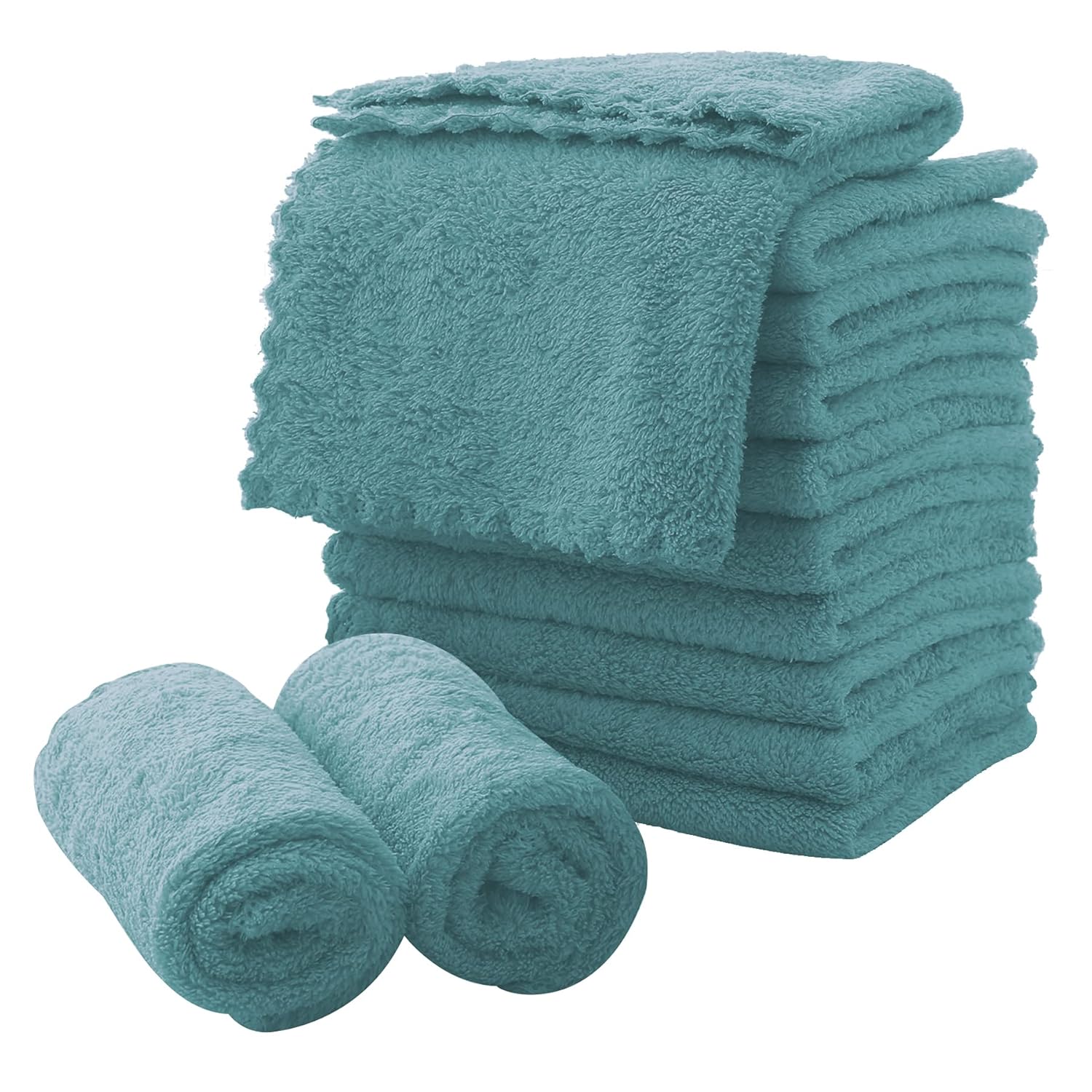 MOONQUEEN Microfiber Facial Cloths Fast Drying Washcloth 12 Pack - Premium Soft Makeup Remover Cloths - Teal