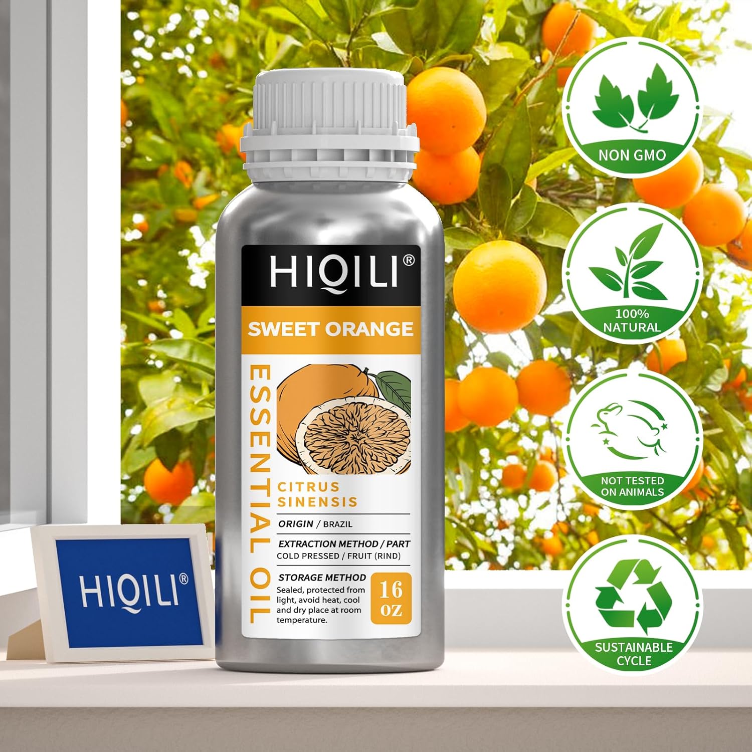 HIQILI 16 Fl Oz Orange Essential Oil, Pure and Natural for Diffuser, Skin - 500ML