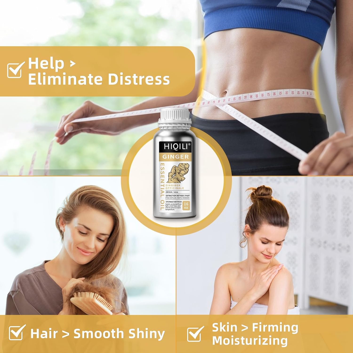 HIQILI 16 Fl Oz Ginger Oil, 100% Pure Natural Ginger Essential Oil for Hair, Massage, Skin - 500ML
