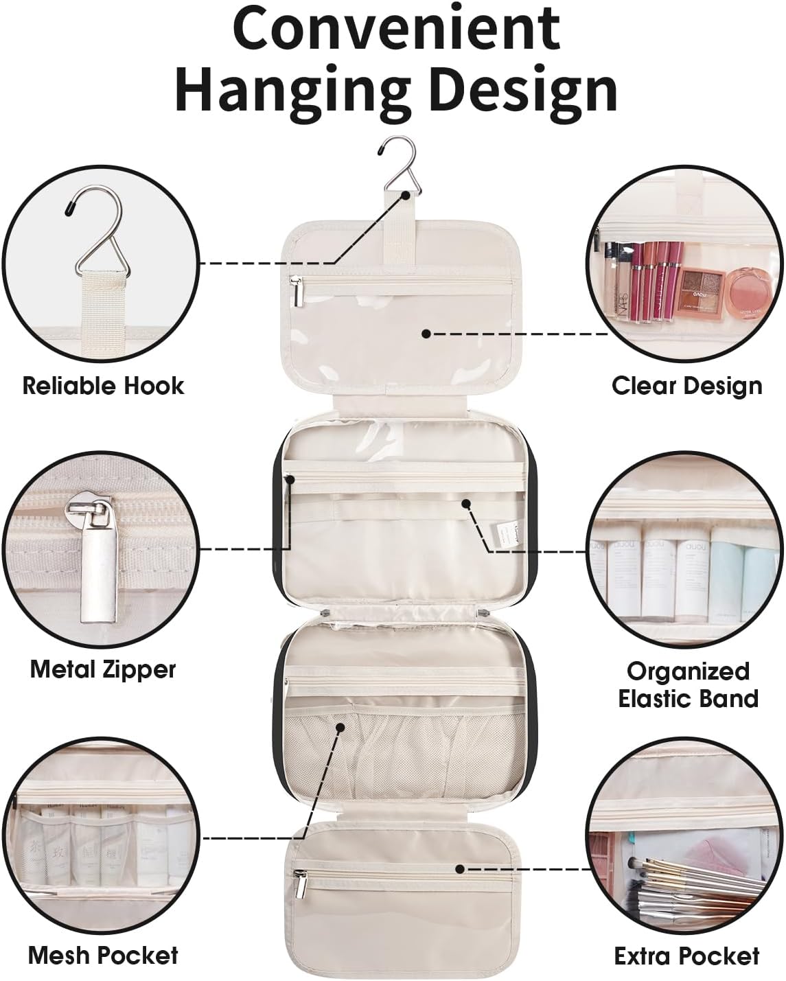 Travel Toiletry Bag for Women Large Hanging Makeup Bag Organizer Toiletries Bag for Full Size Essentials Accessories Cosmetics (Black (Large))