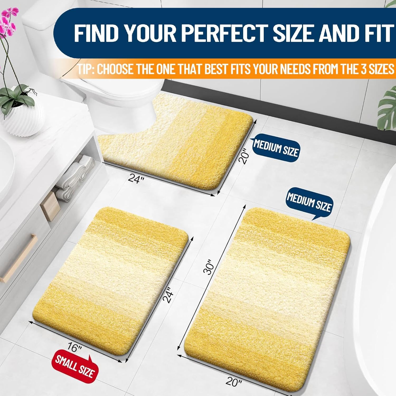OLANLY Bathroom Rug Mat 24x16, Extra Soft and Absorbent Microfiber Bath Rugs, Non-Slip Plush Shaggy Bath Carpet, Machine Wash Dry, Bath Mats for Bathroom Floor, Tub and Shower, Yellow