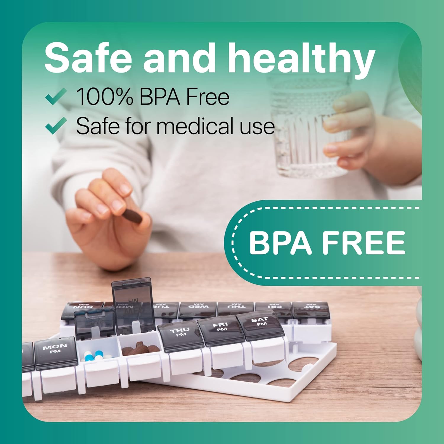 - Health Friendly: Made from food-grade quality material, ensuring safe and hygienic use. The transparent case and AM/PM marks make it easy to distinguish and organize medicines effectively.