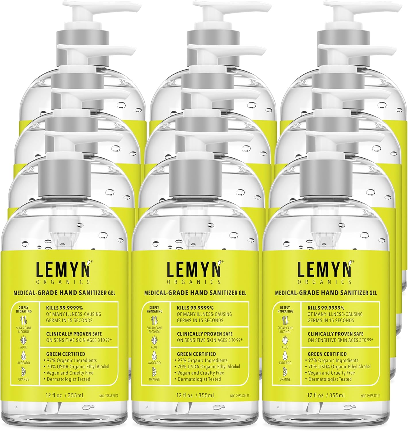 Medical Grade Hand Sanitizer Gel - 97% ORGANIC - 12 FL.OZ. (PACK OF 12)