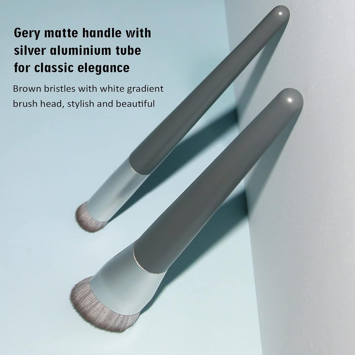 - 🍁[Exquisite Craftsmanship and Design ]: Brochas de maquillaje profesional is made of synthetic bristles and precision-cut brush heads, which is very soft, dense, firm and ultra soft. Smoky gray wooden frosted brush texture handle with silver matte aluminum tube, low-key luxury, stylish and beautiful, easy to use. You will grow glowing with our makeup brush.