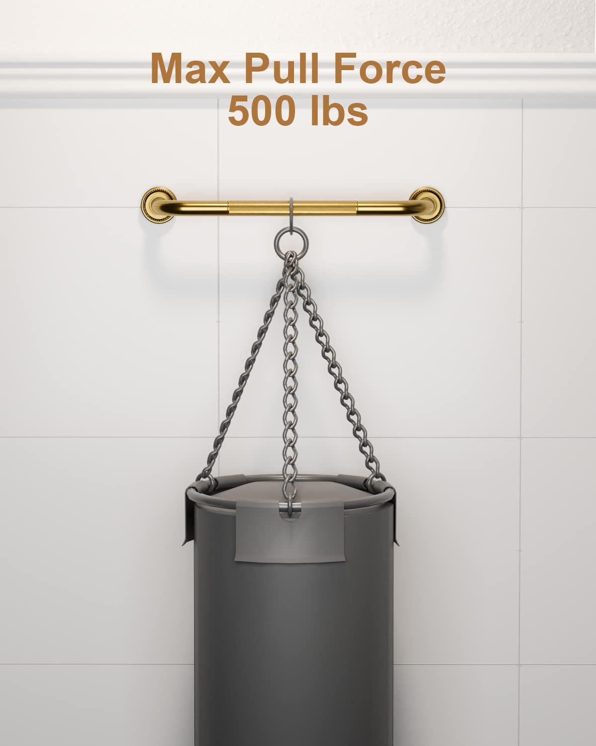 - Munzong 20 inch Bronze bathroom handicap rails (1.0 inch diameter) with golden knurled surface are able to support up to 500 lbs of pull force to provide a stable, reliable handhold; Made of anti-rust Brass for a lasting strength and quality.