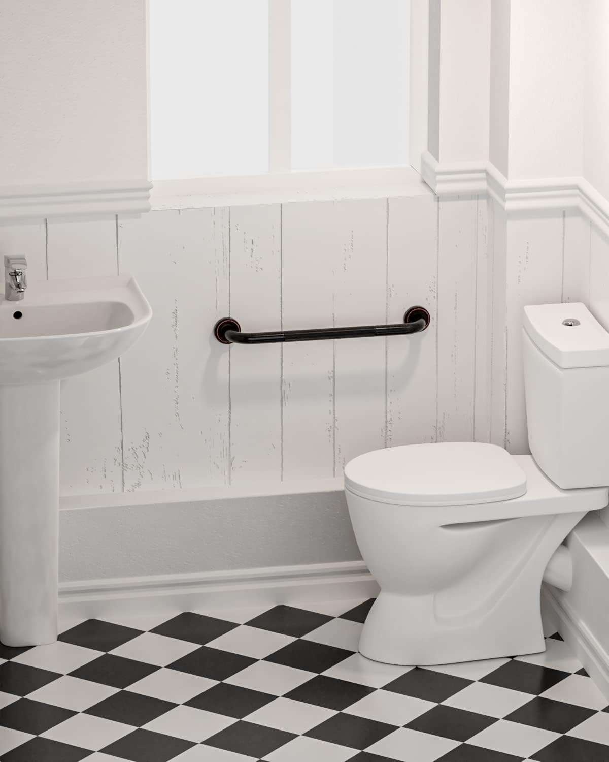 - Use 20 inch black knurled anti slip handrails in the bathroom, kitchen, along stairways, or in the laundry room for additional fall prevention, especially for the handicap, elderly, pregnant women, and children. Not only apply to use as bath shower grab bar, but also can hold clothing,etc.