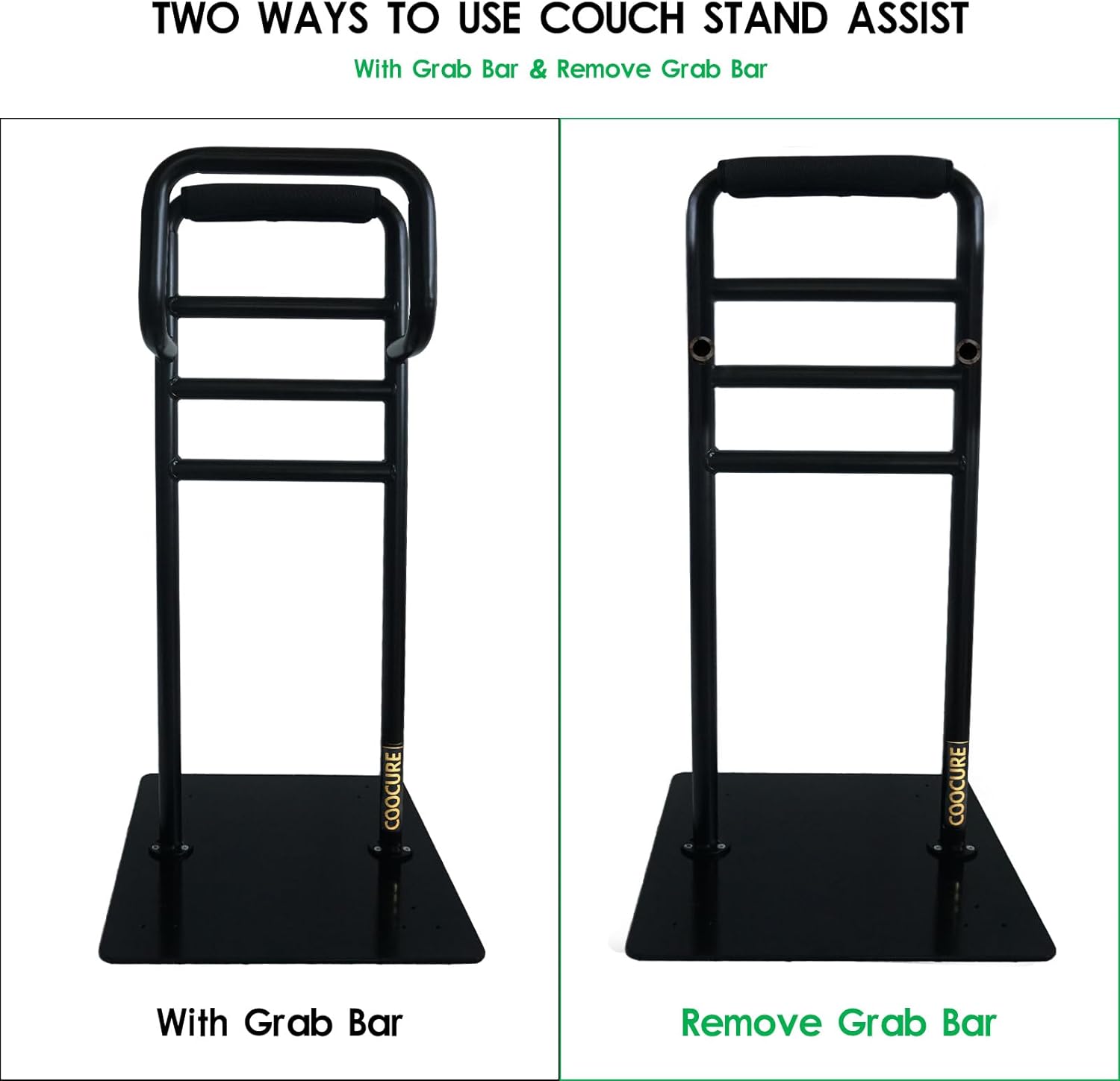 - [Easy and reliable assistive device]: Just slide it under the sofa or couch and use their weight to stabilize.The couch stand assist rail is 30LBs itself thus heavy enough to be used alone too. The base plate and grab bar are firmly connected by six screws, safe to bear up to 500LBs and no wobbles at all.