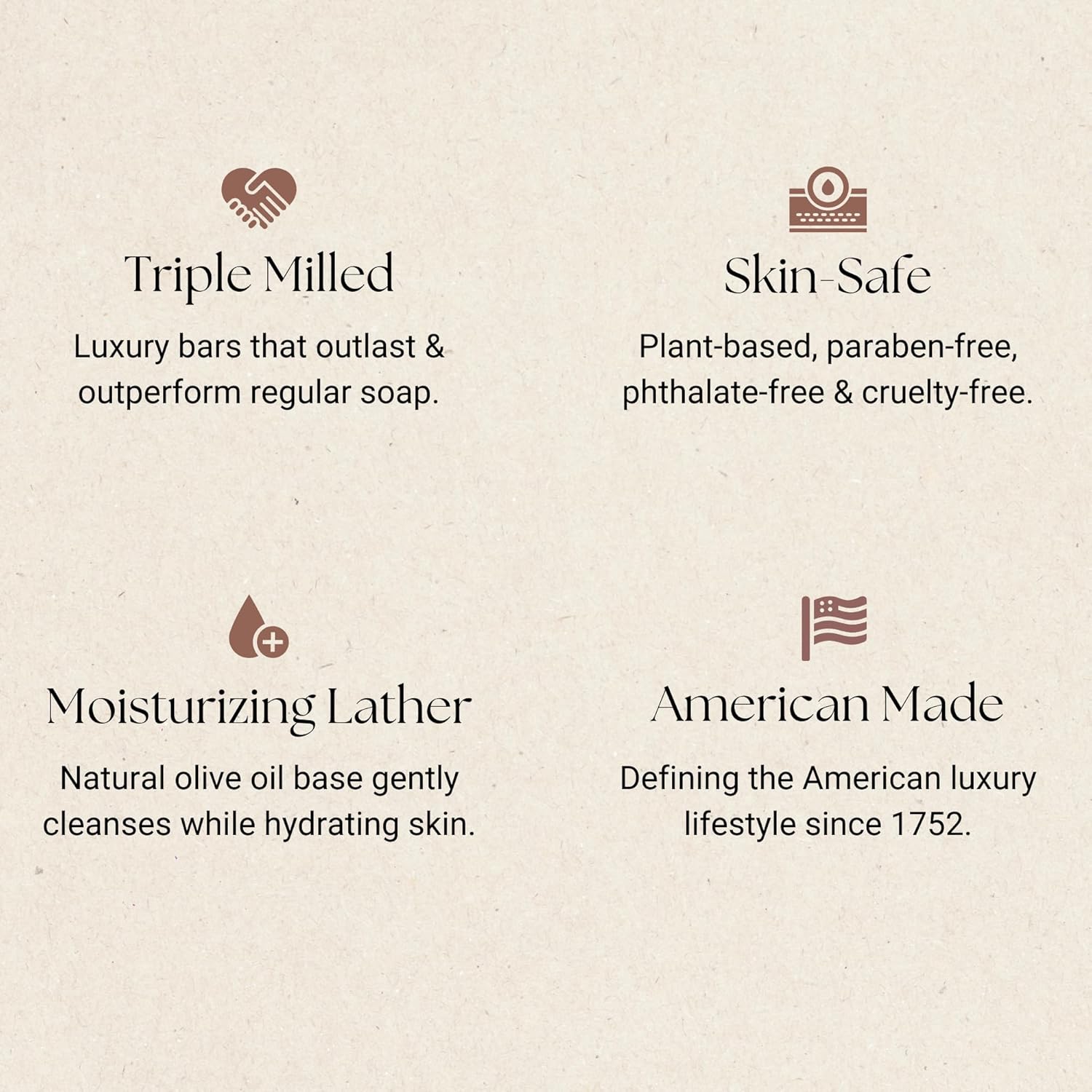 - Triple-Milled for Superior Quality: Our triple-milled artisan process creates a dense, rich-lathering soap that lasts longer and locks in hydration, leaving skin soft, smooth, and refreshed.