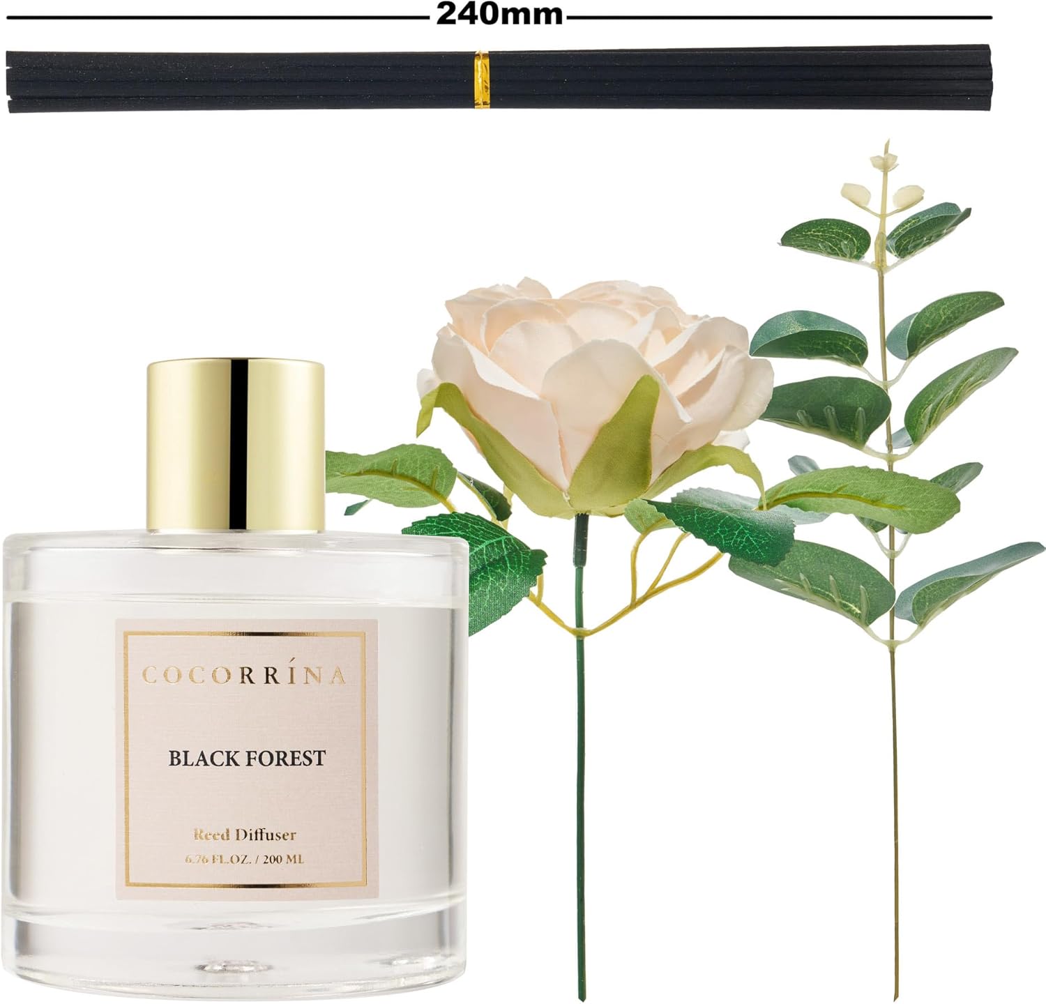 Cocorrina Reed Diffuser Set, Flower Reed Diffuser Black Forest 6.7 oz, Scented Diffuser with Sticks Home Fragrance Essential Oil for Bathroom Shelf Decor, Living Room, Large Room, 1pack