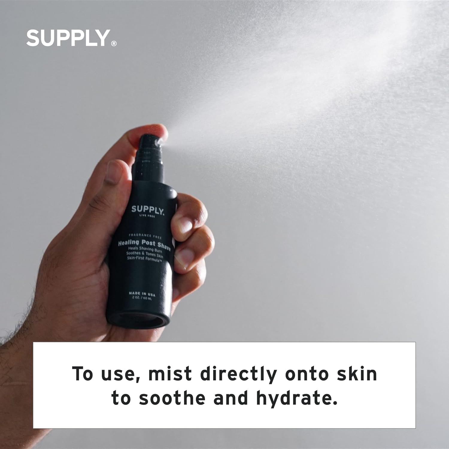 SUPPLY Healing Post Shave- Sandalwood & Cedar After Shave- Alcohol- Free Soothing Formula for Men- Nourishes, Soothes and Boost Cell Repair- for Sensitive and Acne-Prone Skin- 2 oz. Bottle