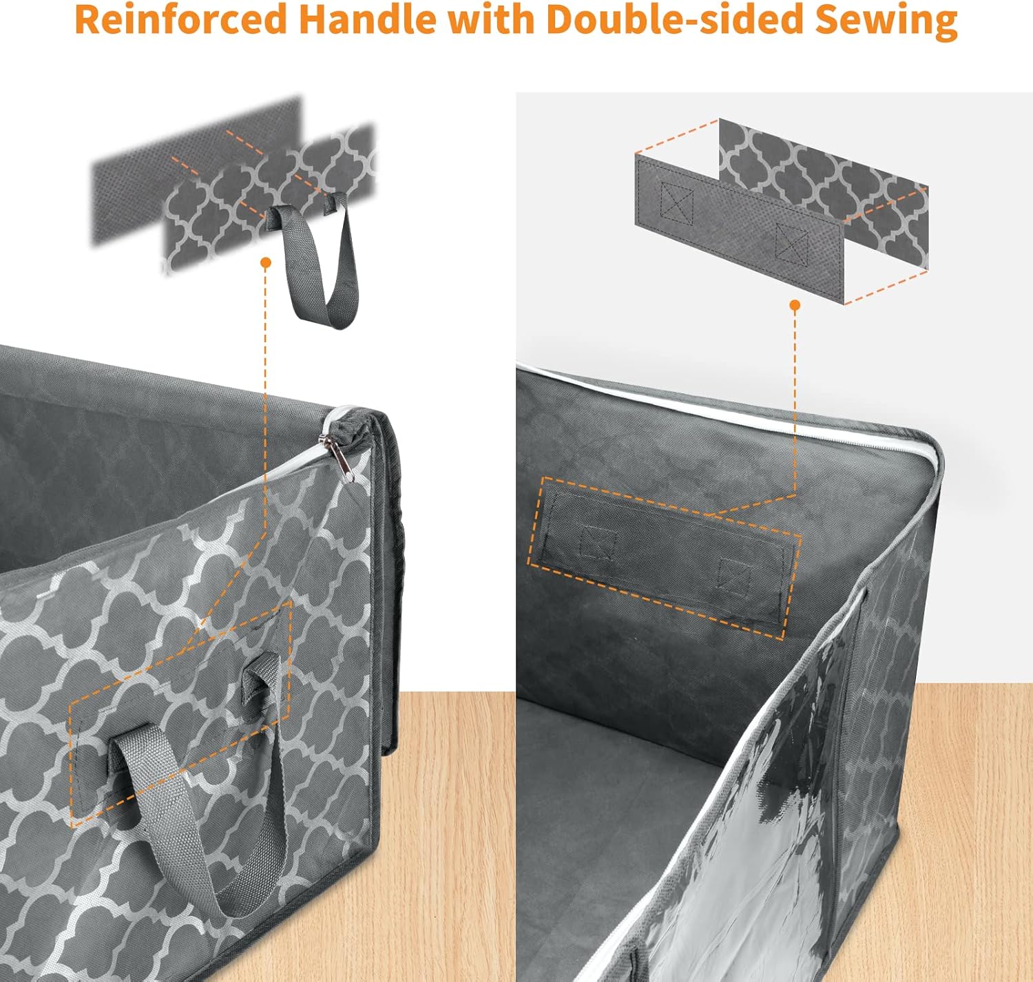 - Soft Material and Reinforced Handle: The storage bag fabric is soft and strong. The handle is sewn with two layers of thick fabric, and the load-bearing capacity is doubled. Reinforced seams are also implemented for added strength, which are hard to be broken, and can be used for a longer period of time