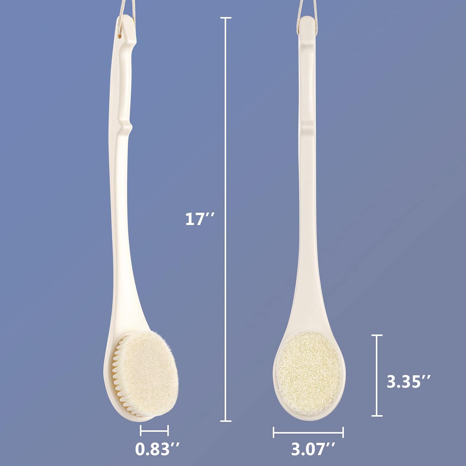 Body Back Scrubber – 17'' Long Handle Shower Brush, Anti-Mold Exfoliator for Dry & Wet Use, Deep Cleansing & Gentle Exfoliation for Smooth Skin – for Men, Women & Elderly (Cream White)