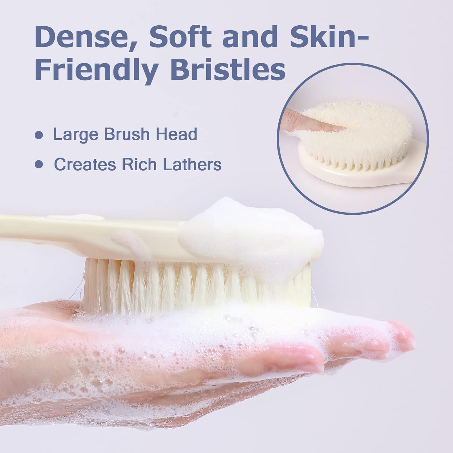 - MODERATE BRISTLES: When designing this bath brush, we tested many kinds of bristles, and selected these moderate and durable bristles in the end. They are excellent bristles that can be generally accepted by most people. Due to storage and transportation, the bristles may be out of shape a bit when you receive the brush, you can use a blower to bring them back into their approximate shape.