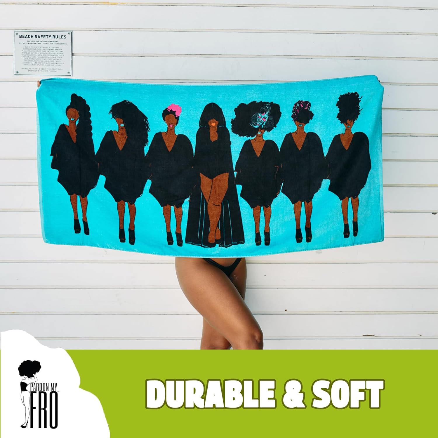 Pardon My Fro Tribe Beach Towel – 100% Cotton Oversized Quick-Dry Swim Towel, Sand-Free & Lightweight Travel Towel for Men & Women, Colorful 30x60in XL for Pool, Ocean & Outdoor Adventures – Teal