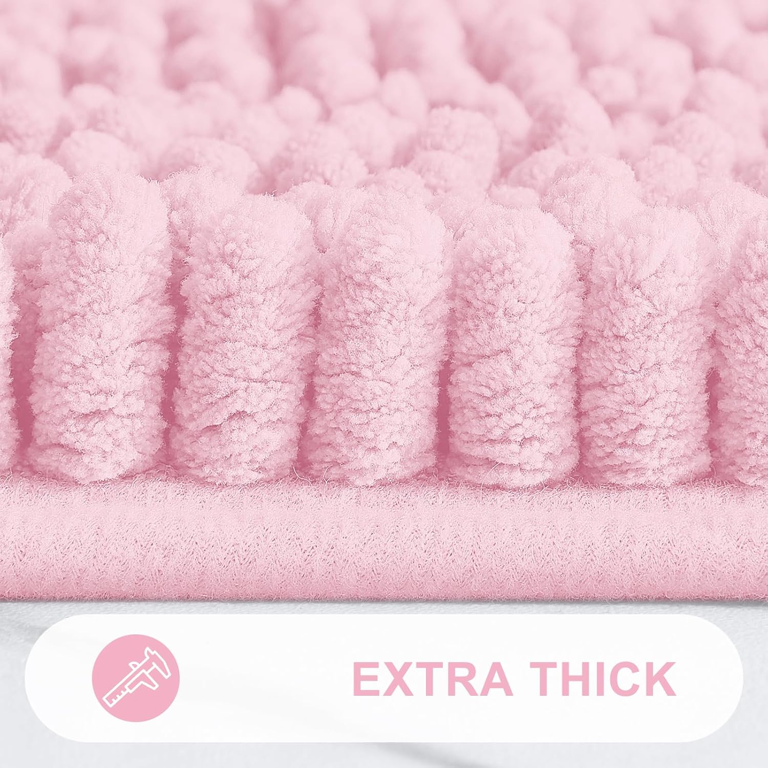 Grandaily Chenille Striped Bathroom Rugs 36x24, Extra Thick and Absorbent Bath Mats, Non-Slip Soft Plush Shaggy Shower Carpet, Machine Wash Dry, Bath Rug for Bathroom, (Large, Pink)