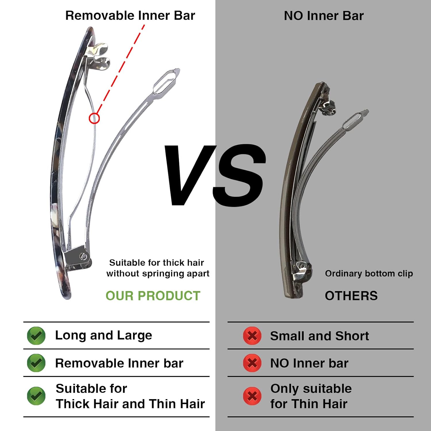 - 【4 Inch Hair Clips】With removable inner bar for thick hair without springing apart. With its graceful distinctive patterns and classic style, this large barrette is the perfect choice for an elegant look.