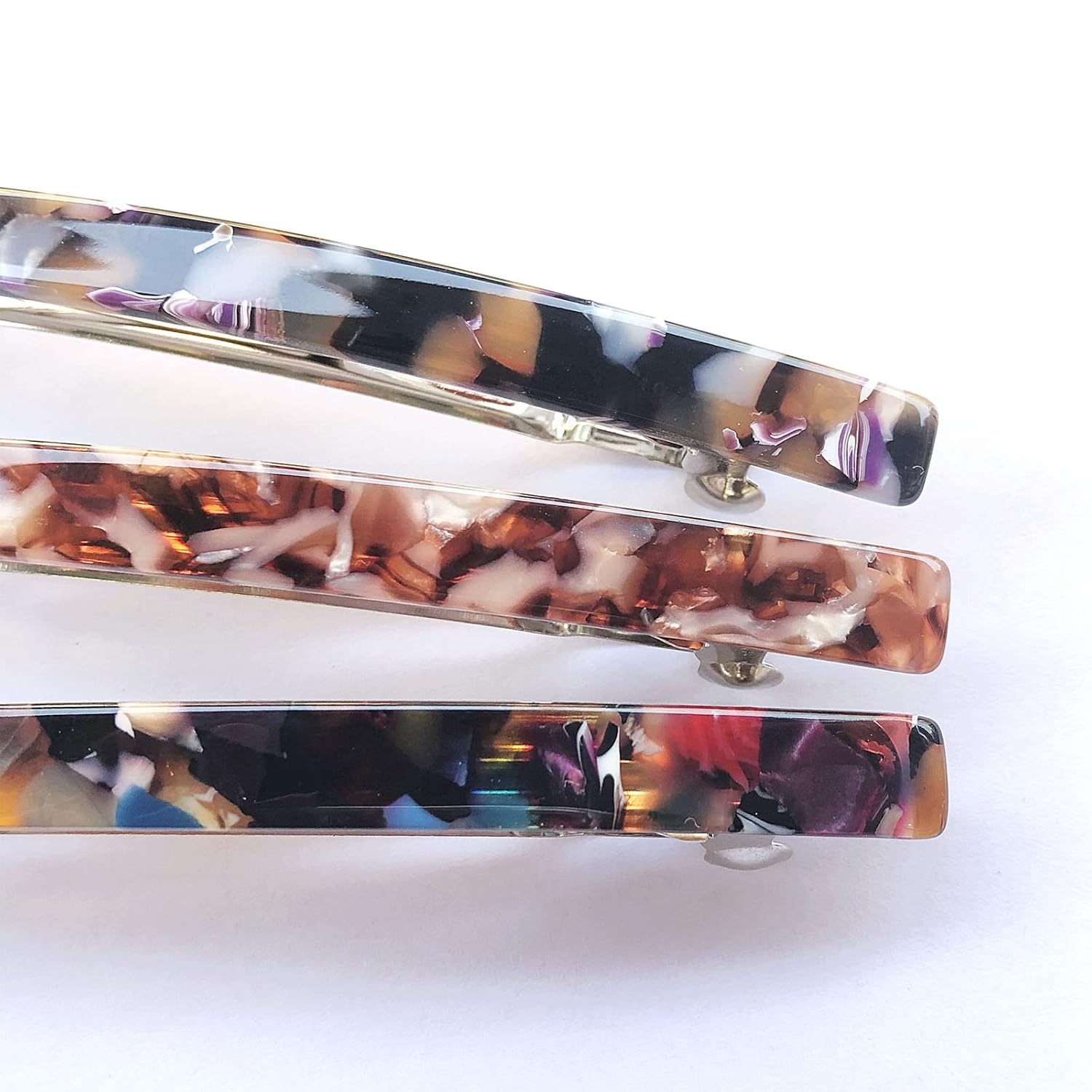 - 【Fashion Womens Barrettes With Sturdy Clip】Made of celluloid acetate with quality steel clasp automatic clamp, which is a key piece to be hold on your hair.