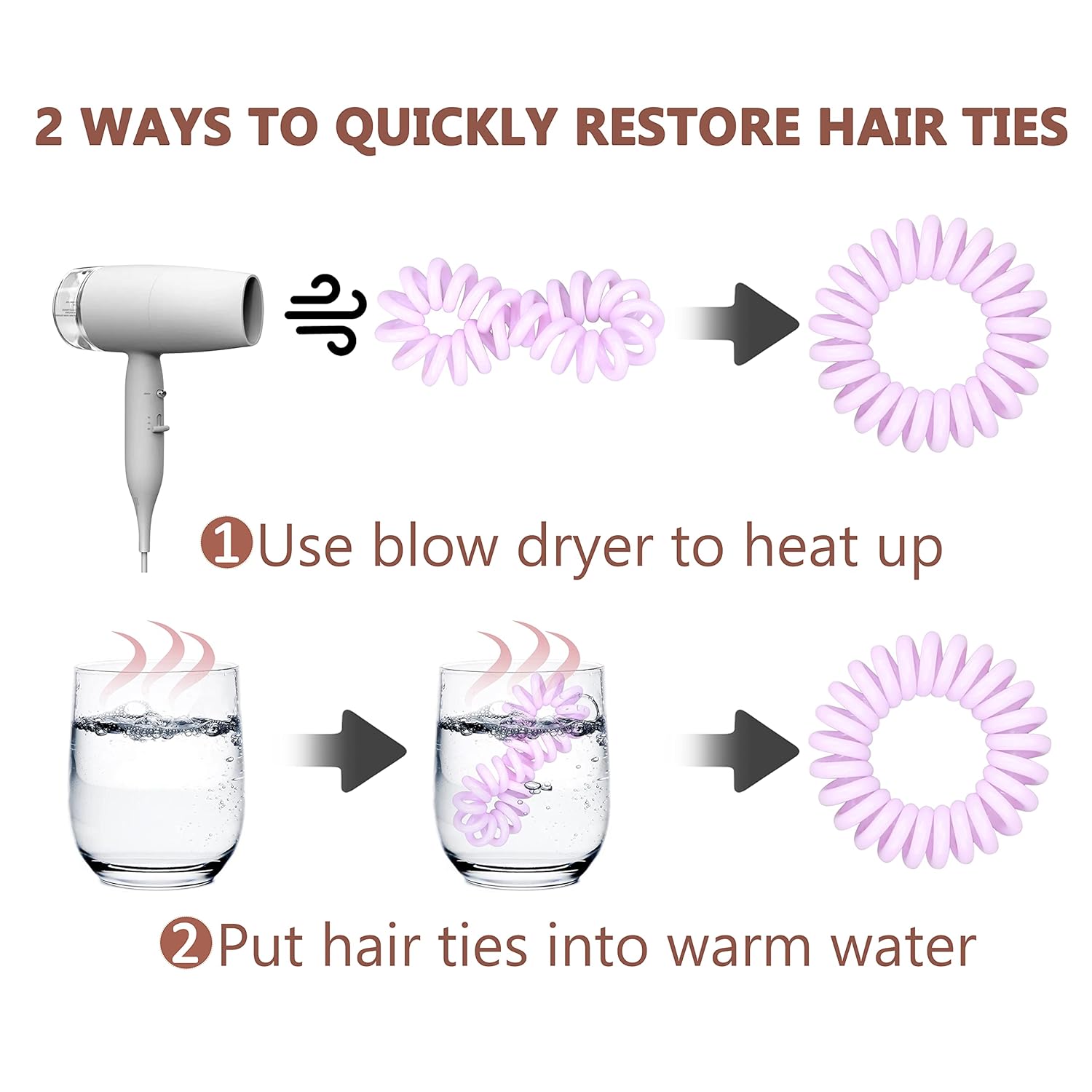 - High Quality Material: This hair elastics for women made of waterproof skin-friendly TPU, which is soft, durable and flexible. The spiral hair ties not only fixed the hair firmly also not hurt for your hair.
