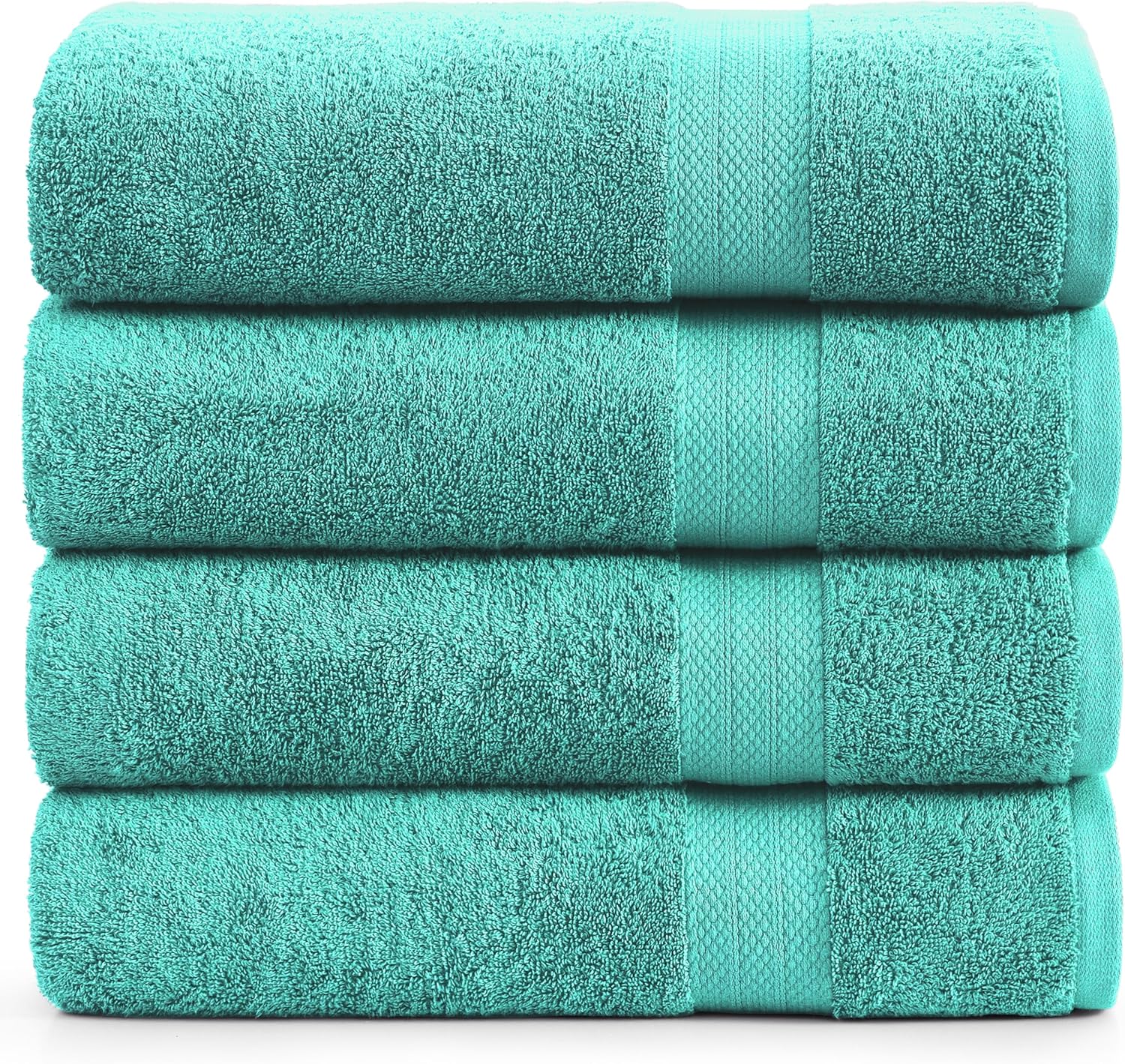 Lane Linen 100% Cotton Oversized Bath Towels Set of 4 (35"x66") - Ring Spun Cotton Oversized Luxury Towels - Quick Dry, Soft & Absorbent Extra Large Bath Towel Sets - Remains Soft after Washing - Teal