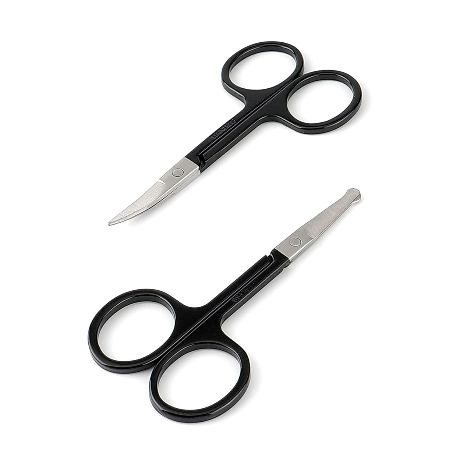 Facial Hair Small Grooming Scissors For Men Women - Eyebrow, Nose Hair, Mustache, Beard, Eyelashes, Ear Trimming Kit - Curved and Rounded Safety Tip Clippers For Hair Cutting- 2PCS Black