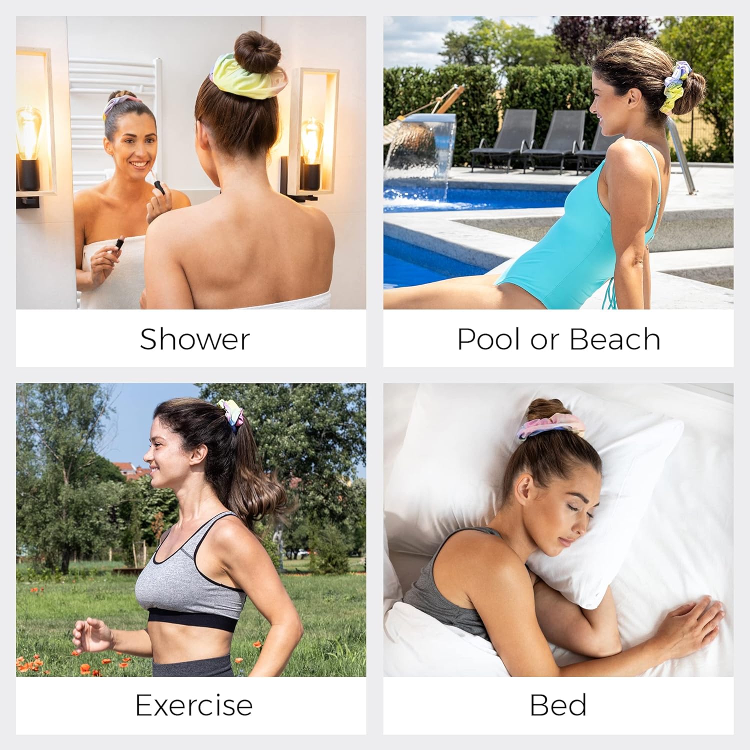 - THE POWER OF RAPID ABSORPTION - Experience the hair-drying miracle! Our silky smooth microfiber scrunchies are like thirsty sponges that gobble up all the extra moisture in seconds, stopping all that messing dripping. Whether you’re straight of the shower, pool, beach, or gym – The Perfect Haircare Towel Drying Scrunchies has you covered!