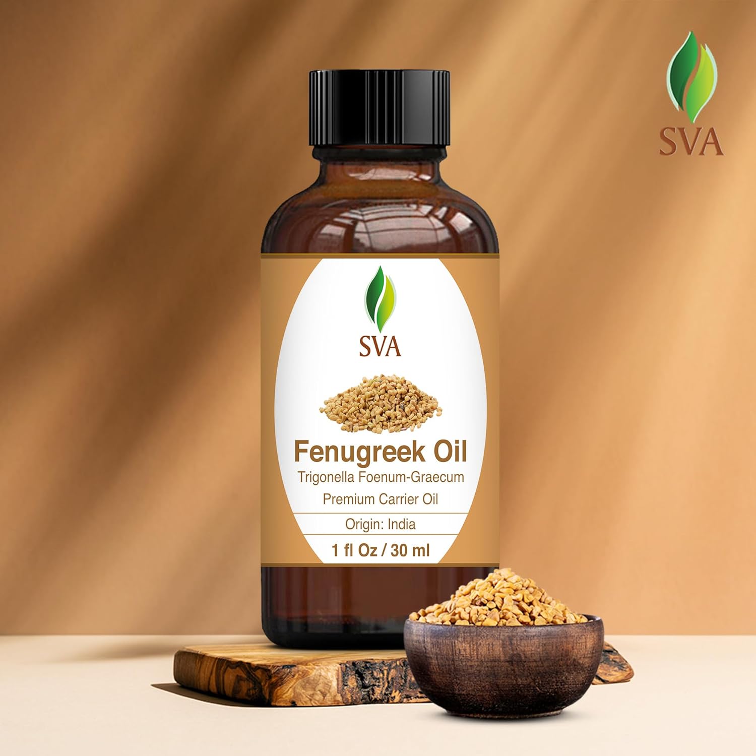 - Premium Quality Fenugreek Oil: SVA Fenugreek oil 1oz is obtained by cold pressing Trigonellafoenum graecum seeds. Our Fenugreek oil is free of preservatives and comes with a dropper for easy application. It is not tested on Animals. We care for you!
