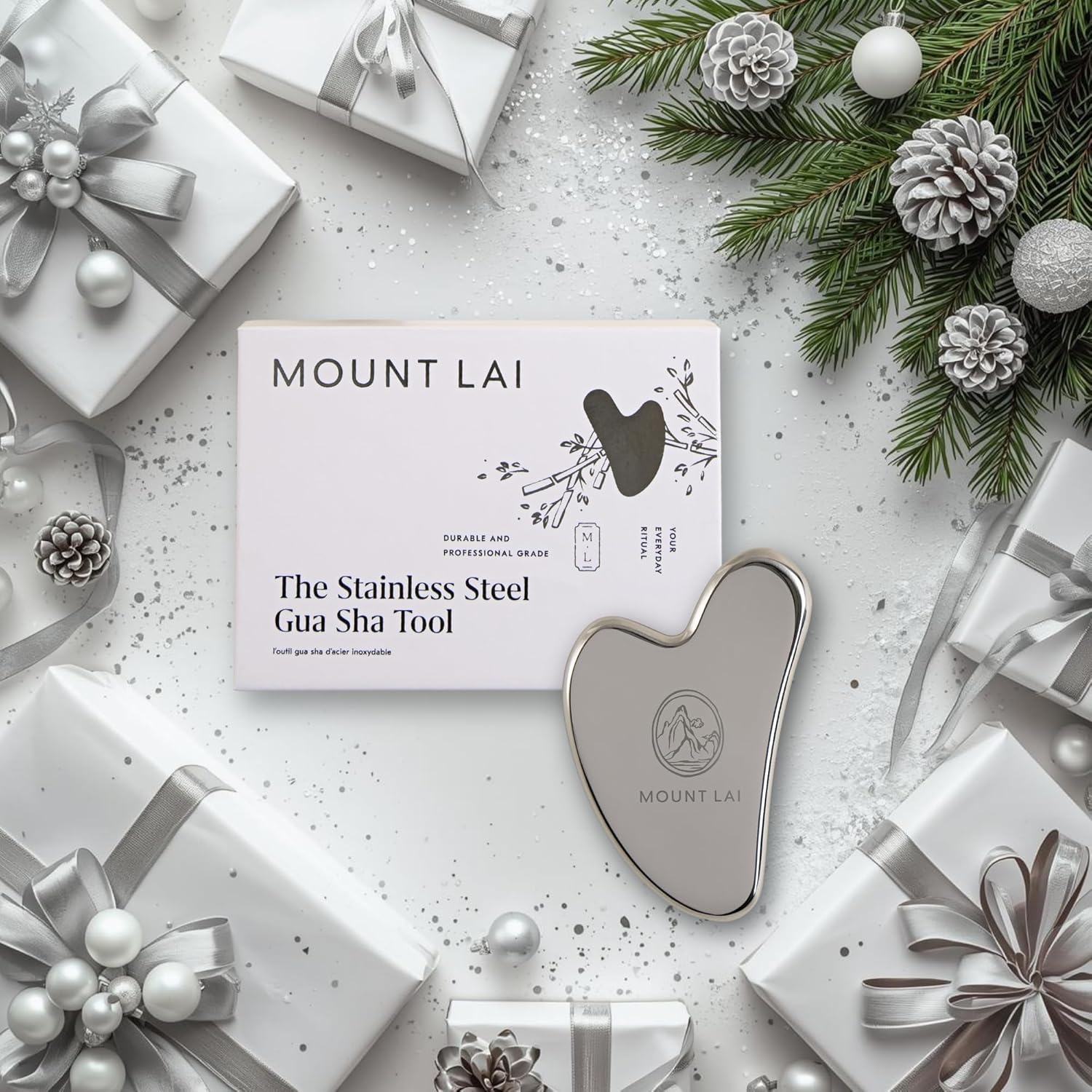 Mount Lai Stainless Steel Gua Sha Facial Tool – The Element of Refinement – Professional Grade Steel Face Sculpting Tool for Lymphatic Drainage, Puffiness Reduction & Refined Results
