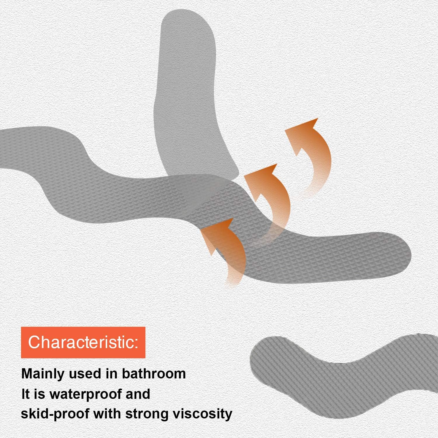 - Design Principle. Each strips can easily stick to the surface of bathtub using special ecological glue. The upper surface comes with approximately hundreds tiny protrusions per piece to increase friction. At the same time, this design is meant to allow water to flow freely further reducing the chances of soapy water accumulating.