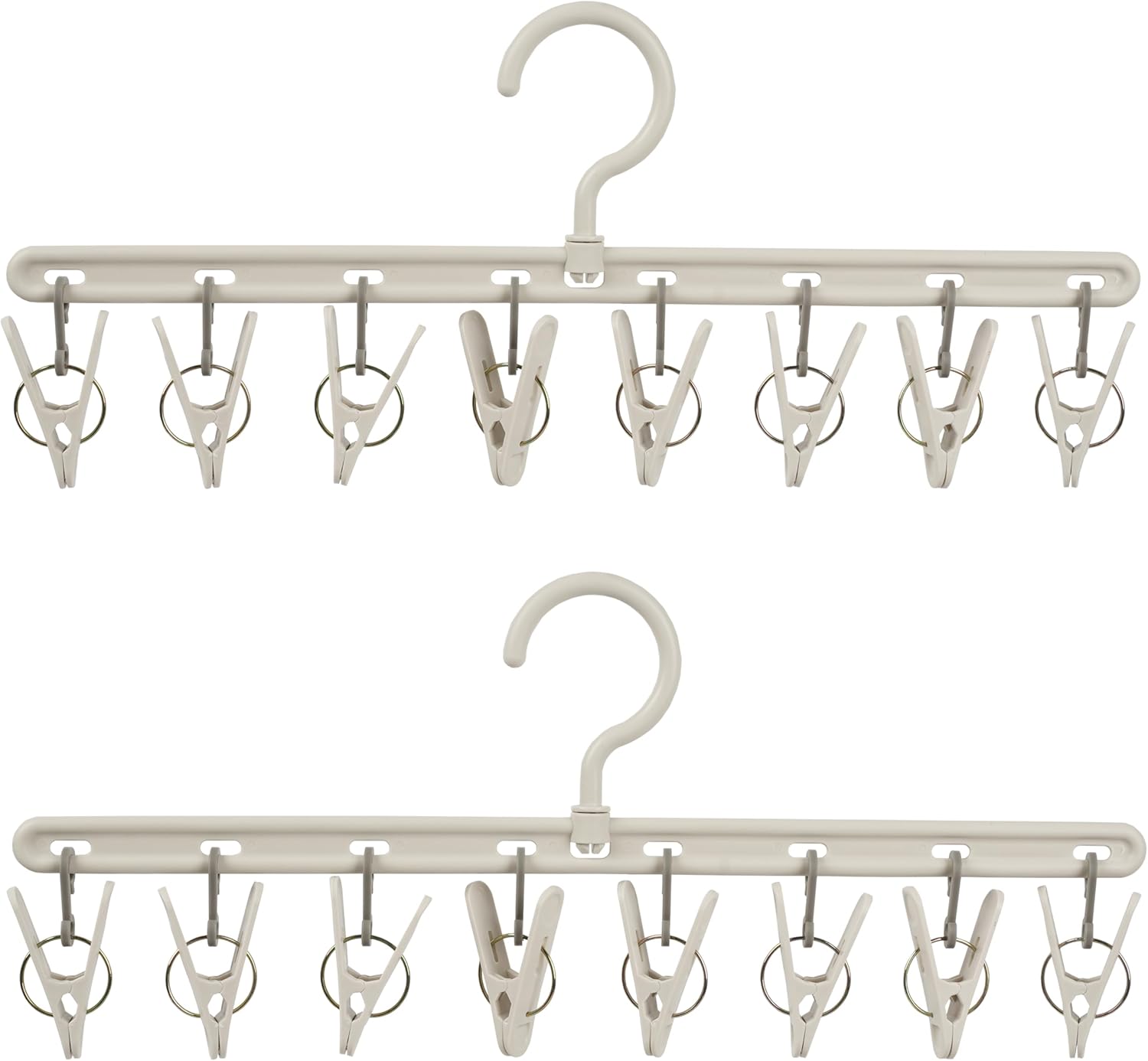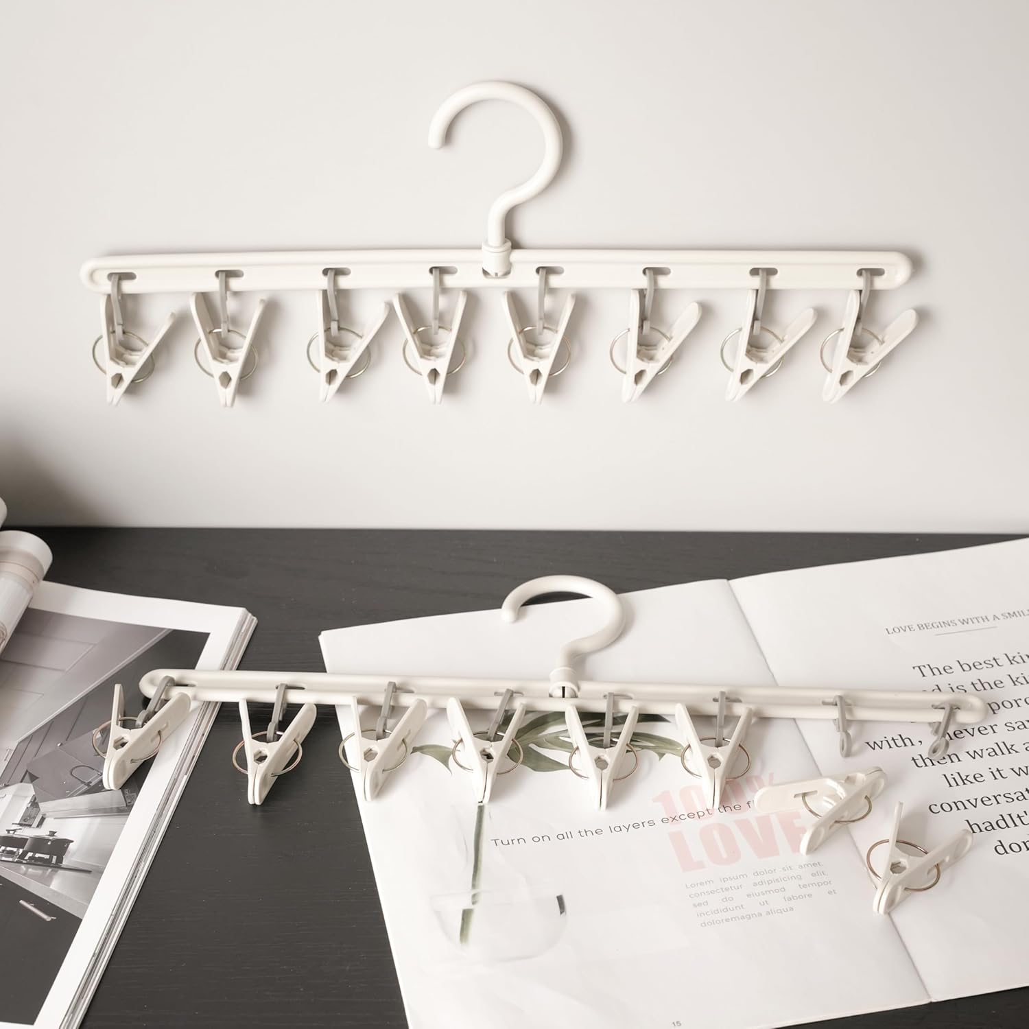 Clothes Hanger 2 Pack with 8 Clips,Clothes Drying Racks Windproof for Drying Socks Bras Underwears Baby Clothes, Hats Scarfs Towels Pants and Gloves Diaper
