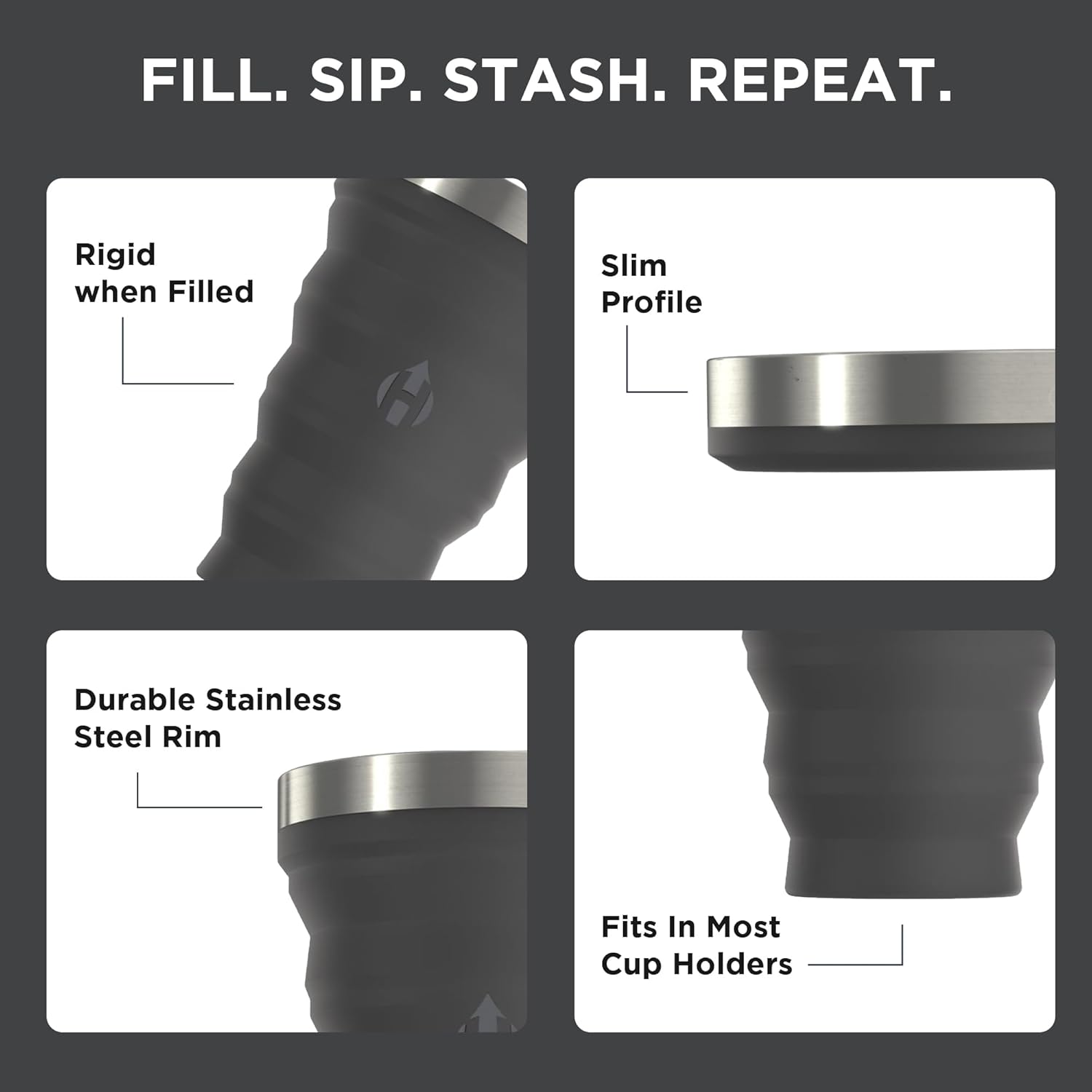 HYDAWAY 16oz Collapsible Pint - BPA-Free Silicone Cup with Stainless Steel Rim - Reusable, Packable, and Durable for Camping, Travel & Everyday Use