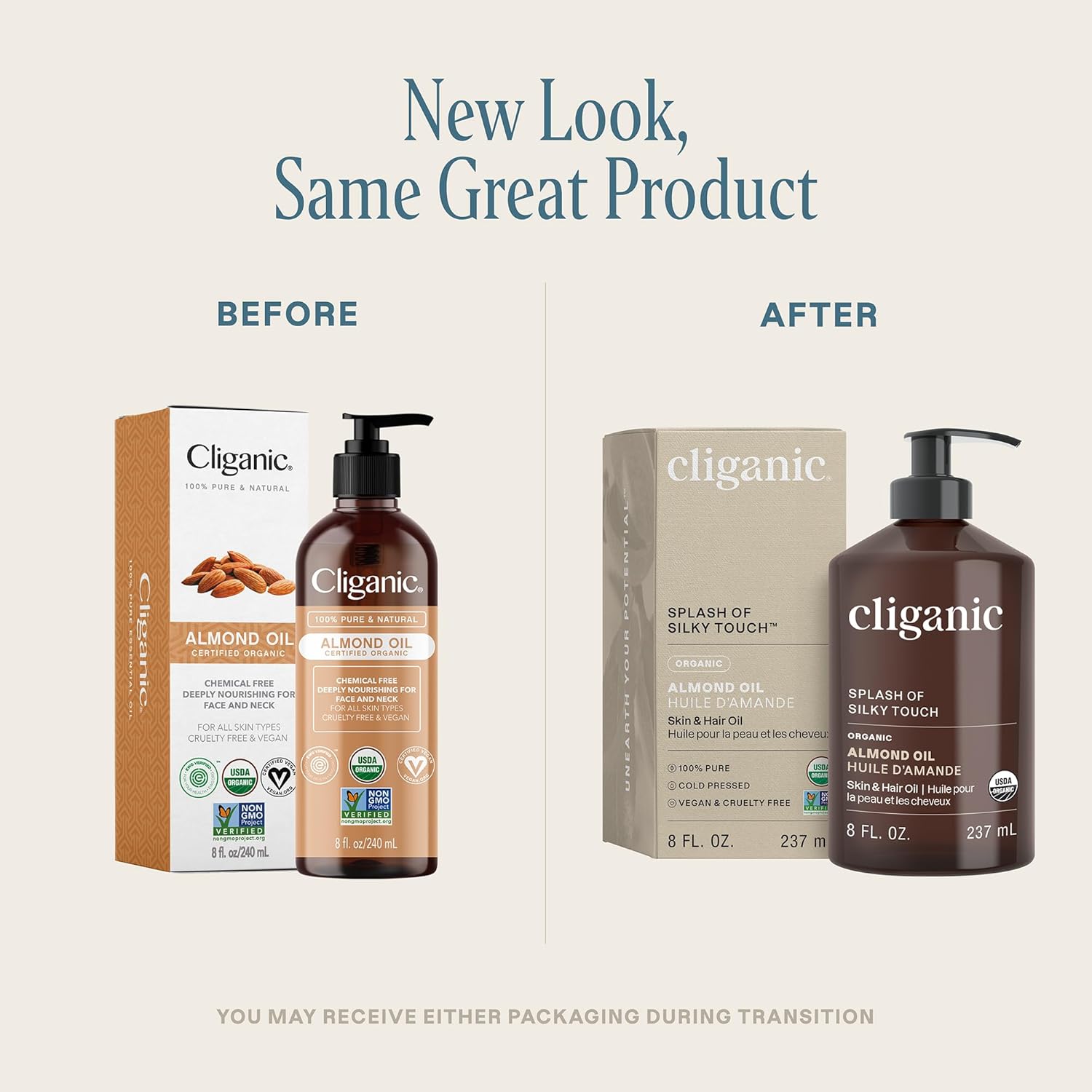 Cliganic Organic Sweet Almond Oil, 100% Pure (8oz) - for Skin & Hair, Nourishing Carrier Oil for Face & Body (Packaging May Vary)