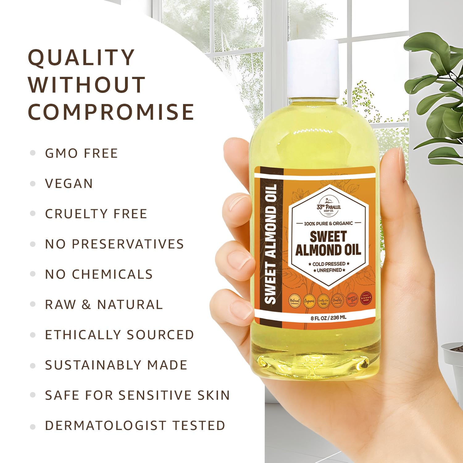 - ✅ PREMIUM COSMETIC GRADE & SATISFACTION GUARANTEED - 33rd Parallel Soap Co supplies bulk Sweet Almond Oil to premium cosmetic brands and we stand behind the purity and quality of every product we sell. Enjoy our high quality RESEALABLE PACKAGING!