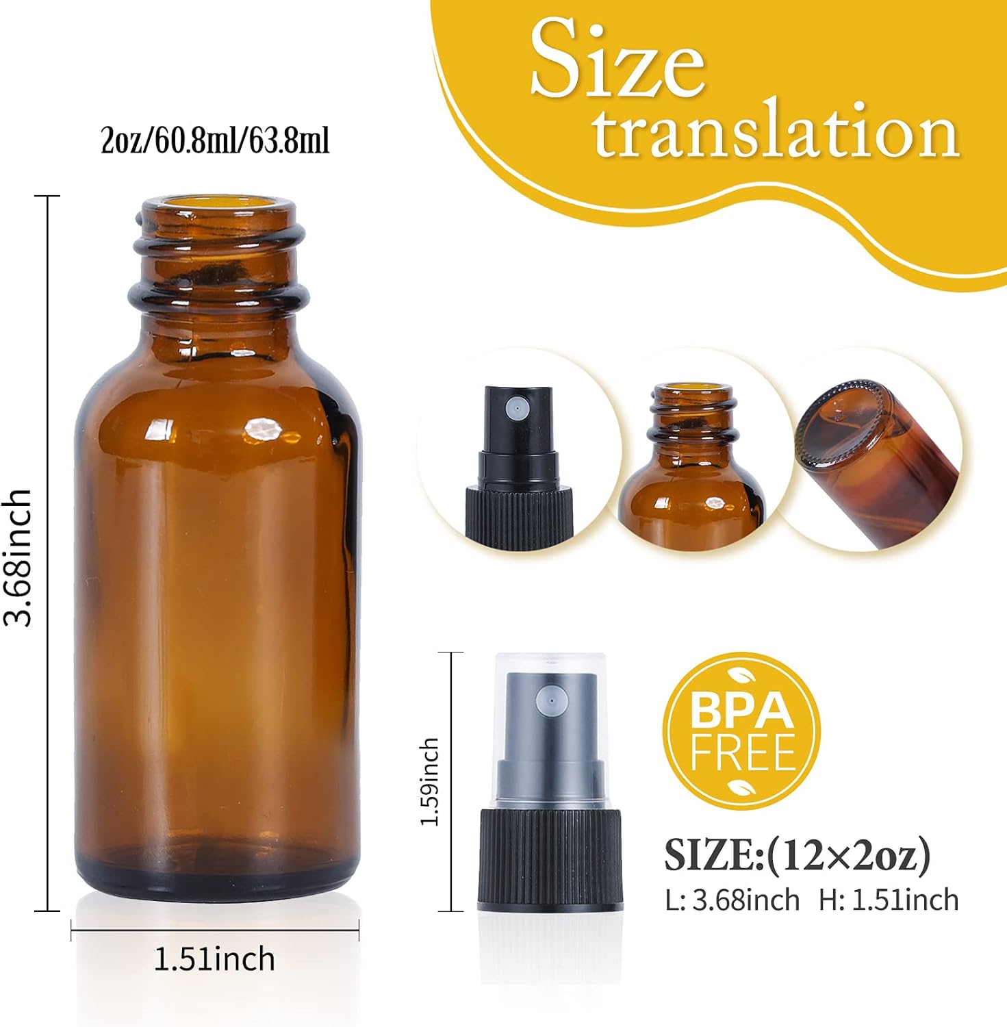 - Value Sprays Set: 12 pack 2oz (60ml) amber glass sprays bottles. Bottles are packaged in grid-shaped partition and thick carton boxes to prevent damage to transport