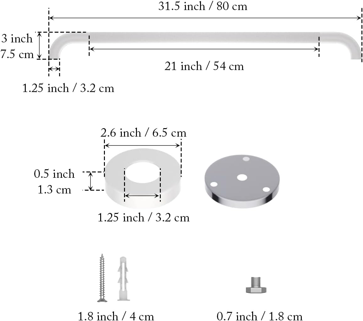 - Munzong 32 Inch white 1.25" Diameter Tube Stainless Steel Shower Grab Bar; the knurled surface on middle is superior for safety when you have soapy hands and need to steady yourself